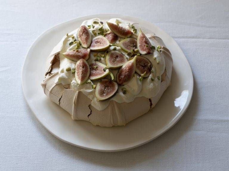 A light yet luscious dessert perfect for warmer weather, Natasha Sideris gives her recipe for a coffee pavlova featuring the quintessential summer fruit: figs.