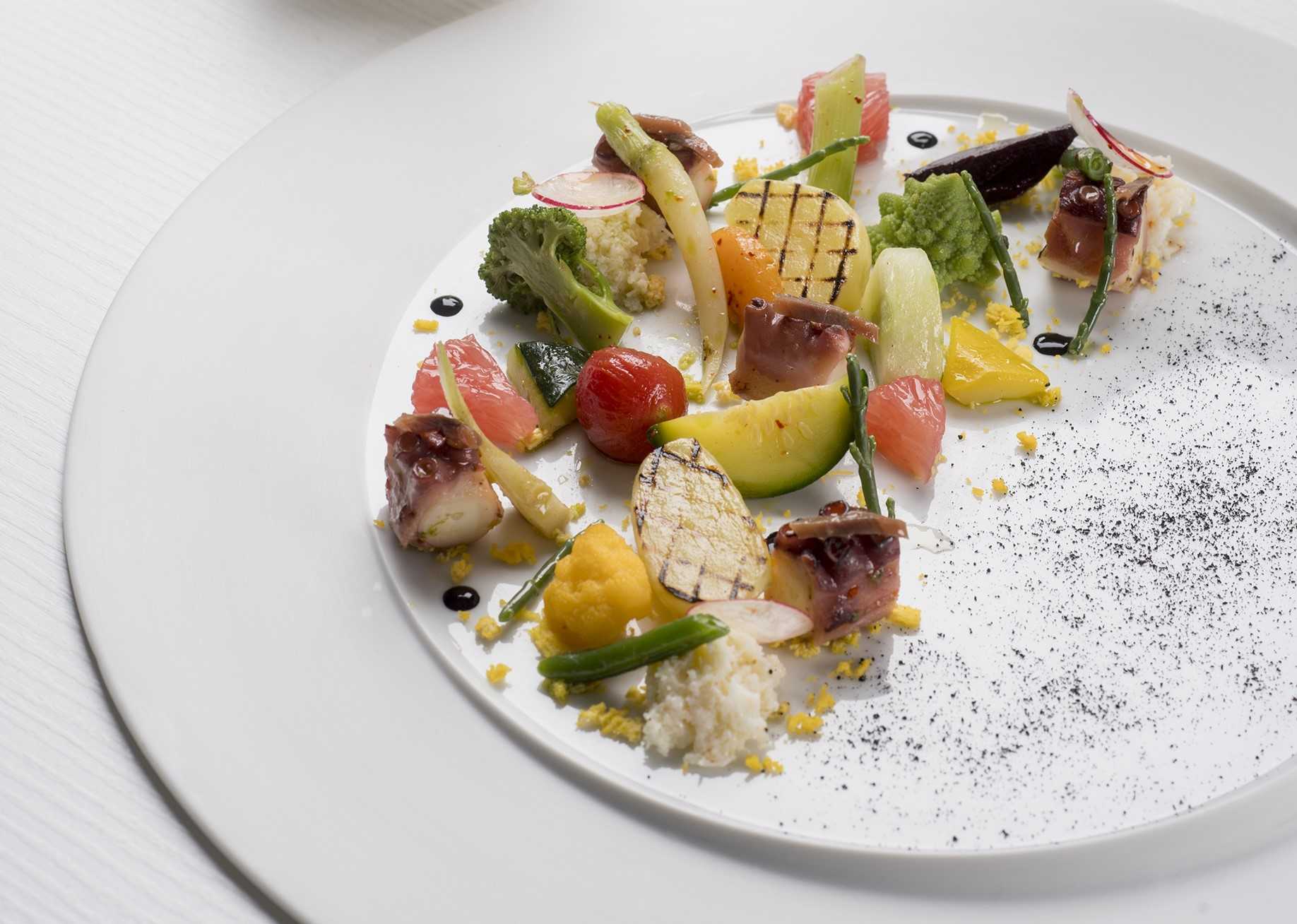 Another dish that stands out on the menu is the aioli moderne. A quintessential Provençal dish served at special family occasions, it’s been transformed into a more modern interpretation by Christophe and his team. Still staying true to the soul of the dish, it features a garlic-doused aioli accented by locally caught octopus and seasonal vegetables from the Beausset Market gardeners. A taste and visual masterpiece in equal measures, it delivers a festive feel to his diners, just as the chef intends to do with each of his dishes.