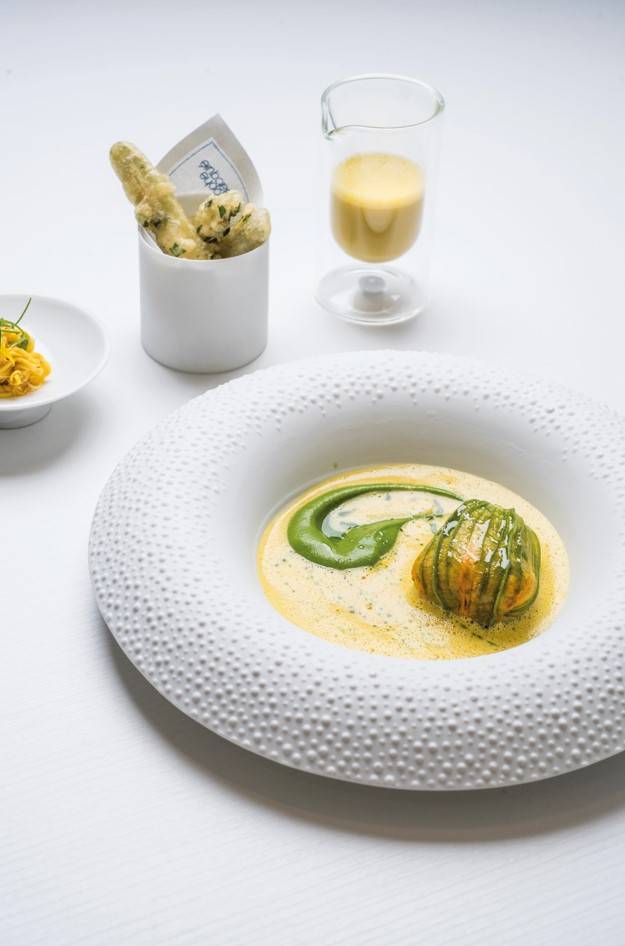 “I don’t create dishes every day; I’m inspired by the season and the desire to work with a particular kind of produce. It then becomes a team effort with my chef and sous chefs. A dish is constructed gradually and is rarely set in stone; it changes over time and with the passing years.