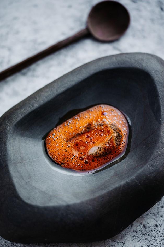 Served to the backdrop of a moody dining room — designed on the fly by Amelia and Gareth — it takes a good four to five hours to enjoy the full dining experience. But don’t worry, every dish delivers a taste explosion worth waiting for. The menu is punctuated with many meat courses and a good handful of puddings, but the fish dishes stand out as Gareth’s favourite at the moment.