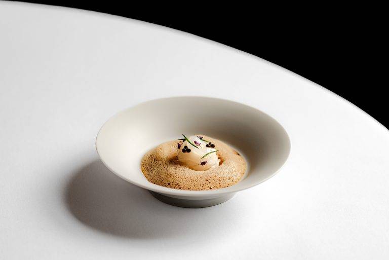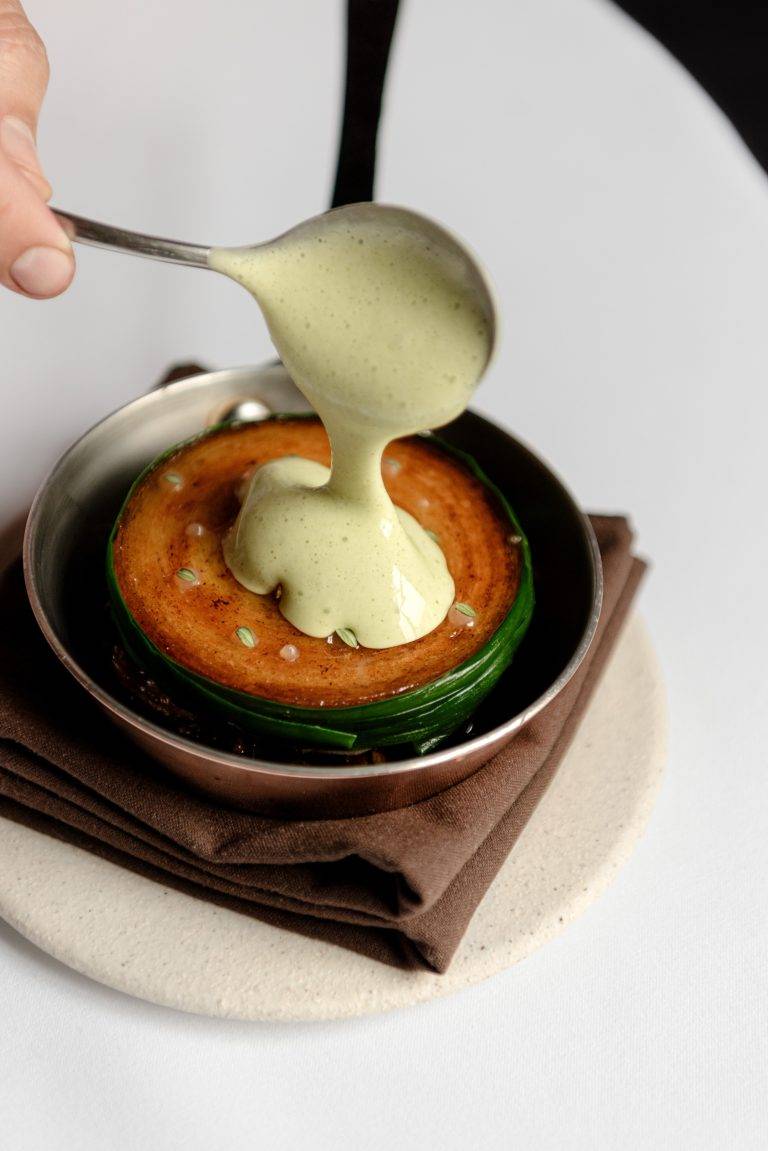 Dining at Cycene is an experience that is designed to feel like both a restaurant and a home, so creating a warm, intimate atmosphere is essential. There is a real sense of relaxation—from the moment guests arrive, lights are dimmed, and candles are burning in the bar, where seasonal broth and bread are served. It’s about switching off from the outside world.