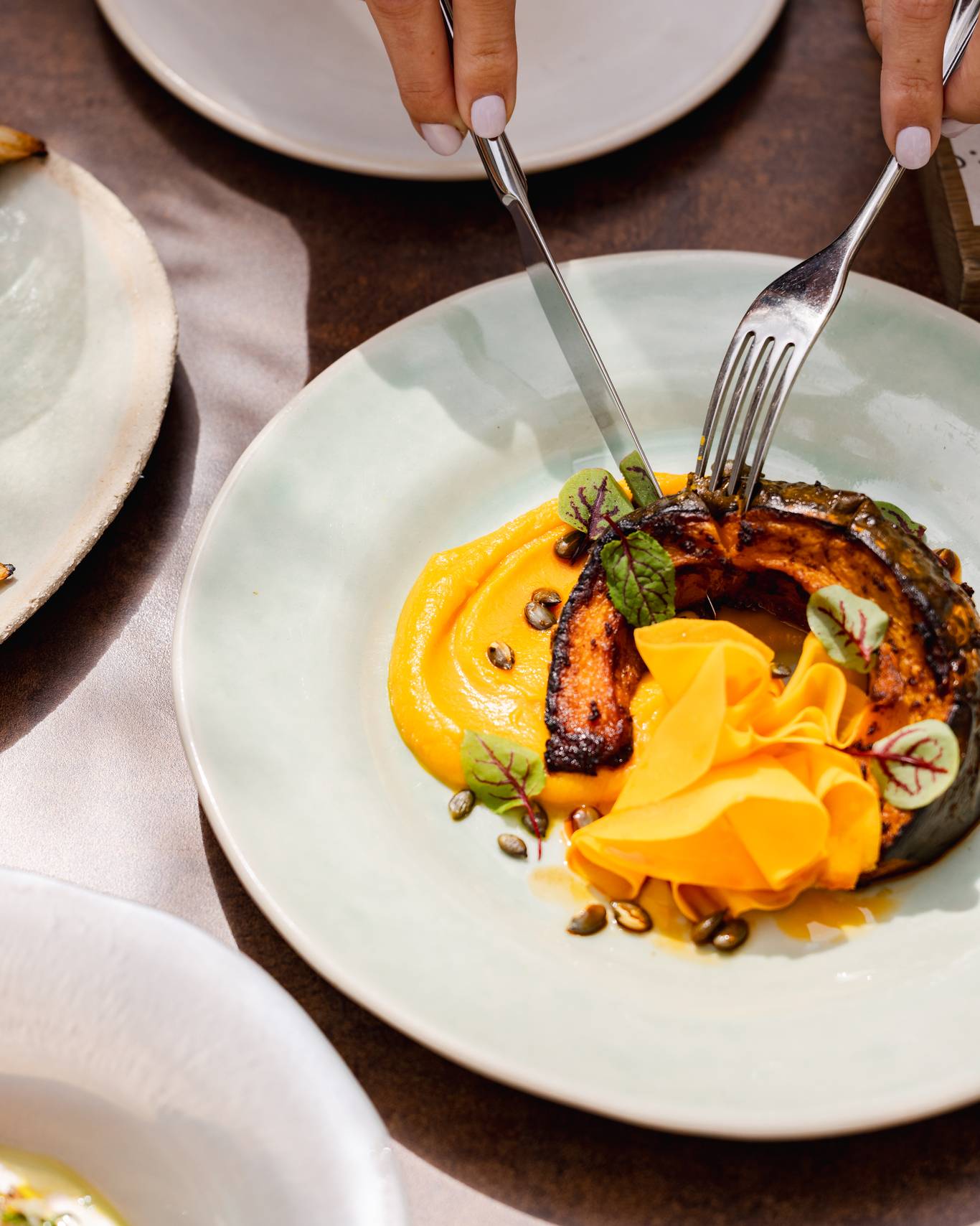 For our produce, I go to the market myself to see, smell and feel what is available for us to put on the menu at Claro and to be inspired. Since all of our dishes are made with local, seasonal ingredients, it largely depends on what is available each week, so we have certain dishes, like the Claro market salad, which changes every single week. We also work closely with our producers across the UK. It’s important to ensure we’re aligned with our suppliers on our ethos, so that each ingredient in a dish receives the same care. Most recently, we worked with our partners in Berkshire and developed a special set of dishes for our ‘Berkshire Month’ to spotlight the produce and protein sourced from the Berkshire region.