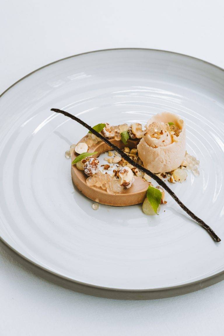A standout main pairs line-caught sea bream with vignarola, a traditional Roman vegetable medley. The fish is grilled over binchotan charcoal—a Japanese oak wood known for its clean, smokeless properties—adding a subtle depth to the dish.