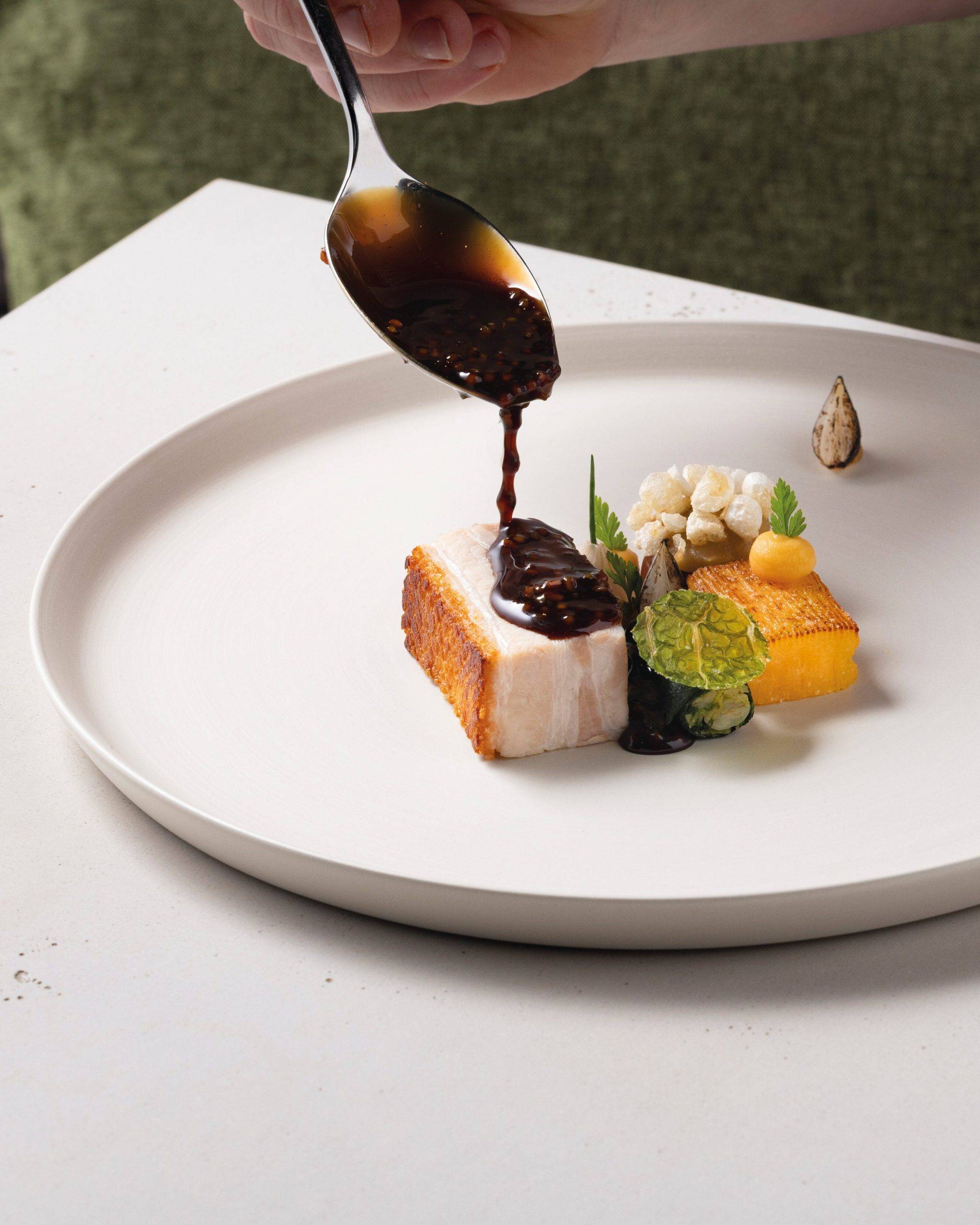 In 2022, 2023 and 2024, the Michelin Guide awarded Mountain Hub Gourmet one star, a resounding testament to the restaurant’s success. In the esteemed guide’s review, particular emphasis was placed on what has been essential from the very beginning at Mountain Hub: sustainability and regionality. Or, as the testers put it in the 2023 edition: “The gourmet restaurant of the ‘Hilton Munich Airport’ hotel, located directly at the airport, entices with aroma-rich cuisine in which excellent products take centre stage and give the modernly implemented dishes a regional touch.”
