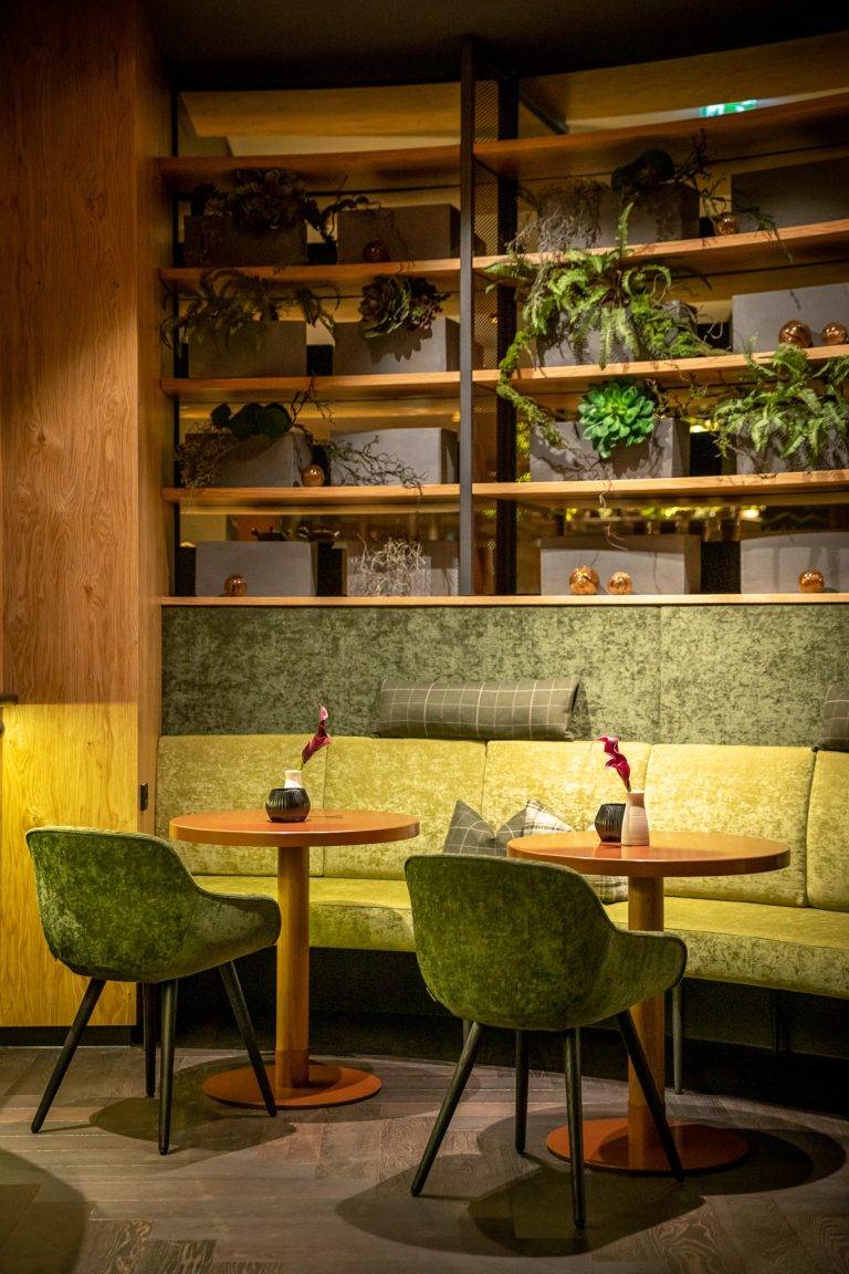 A culinary offering of this calibre perfectly suits the hotel, which stands tall as a haven for travellers seeking respite in the buzz of Munich’s bustling airport. Located less than 100 steps from the gates before departure or directly after arrival in Munich, Mountain Hub by Hilton Munich Airport offers guests an oasis at an absolutely high-end level. Launched in 2017, this distinctive brand boasts a new wing comprising 162 rooms and an executive lounge, all designed in a modern Alpine style. Adding to its allure, all of the rooms and public areas have been entirely furnished with natural and regional materials from the (pre-) Alpine country: wood, felt, and a palette of green, brown and blue hues directly reflect this region’s inviting landscape that attracts millions of tourists and business travellers alike year after year. “Mountain Hub” can be read on the entryways, and the backdrop of the legendary Watzmann massif adorns the doors, beds and more as a discreetly elegant emblem, reinforcing every iota of the space with the inherent magic of this locale.