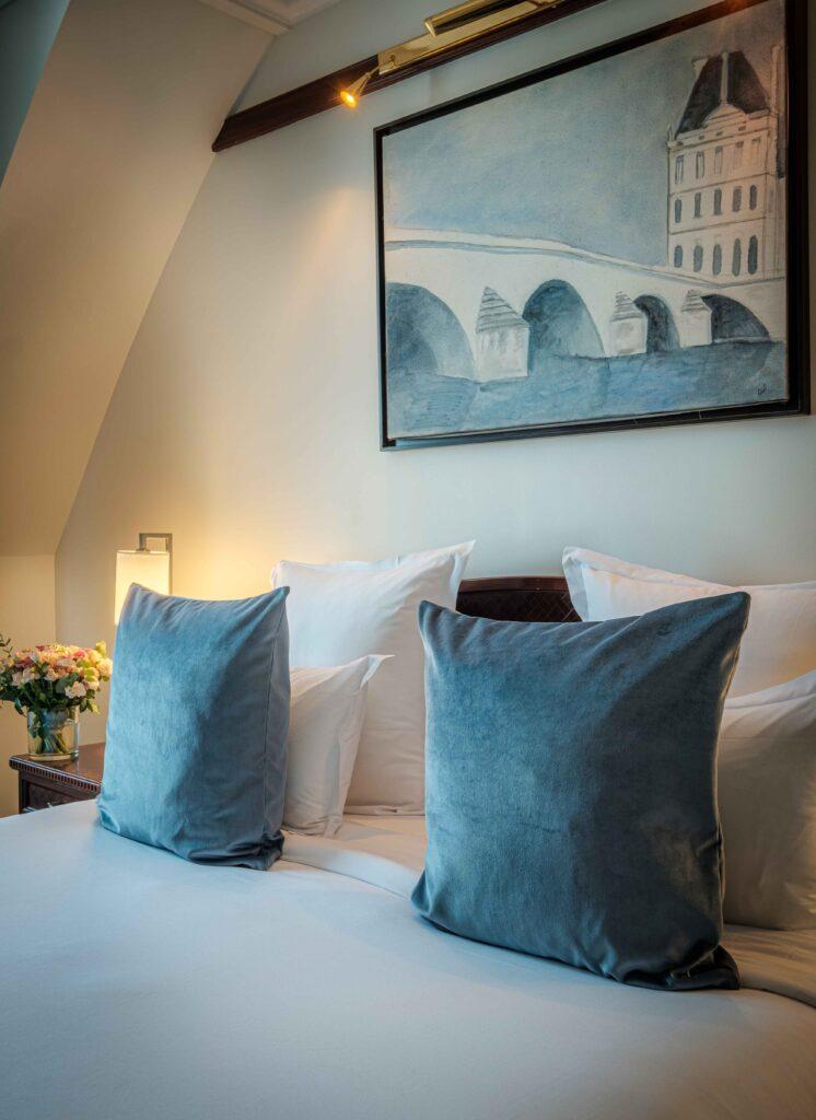 The hotel is in the heart of Saint-Germain-des-Prés, which is the quintessence of Paris. This is where, as a traveler, you can find the perfect balance between culture (keep in mind that St-Germain is where jazz is born in Paris, and where all the poets and writers were mingling in the 50’s), shopping, and getting the sense of being a true Parisian for a couple of days.