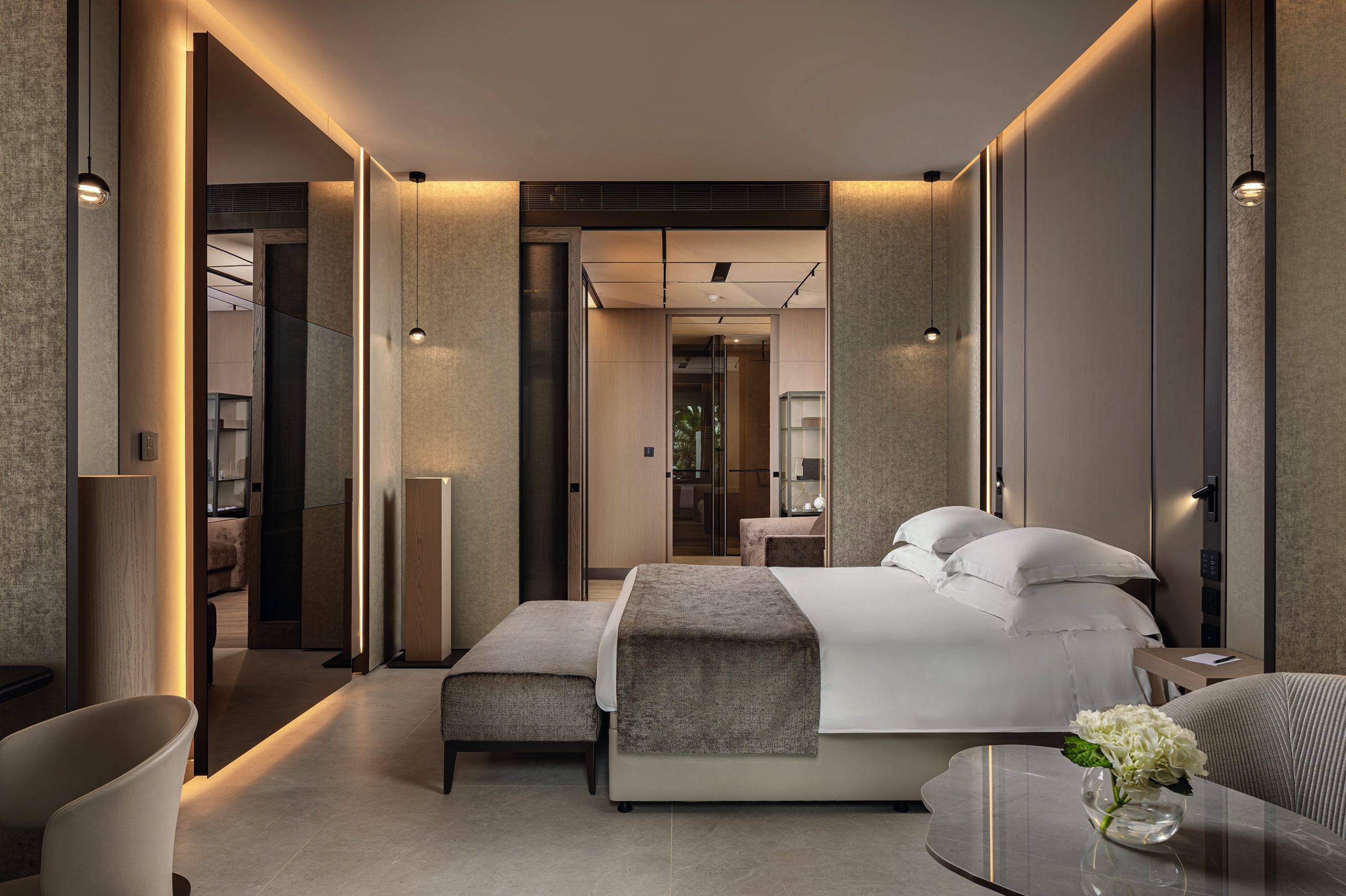 Enveloped by verdant foliage and the endless blue of the sea, these thoughtfully crafted one-, two-, and three-bedroom residences — some featuring private pools — along with the Junior Suites, each with its own pool, blend elegance with comfort. Generous interiors, elevated ceilings, impeccable finishes, and subtle lighting shape an inviting and polished ambiance.