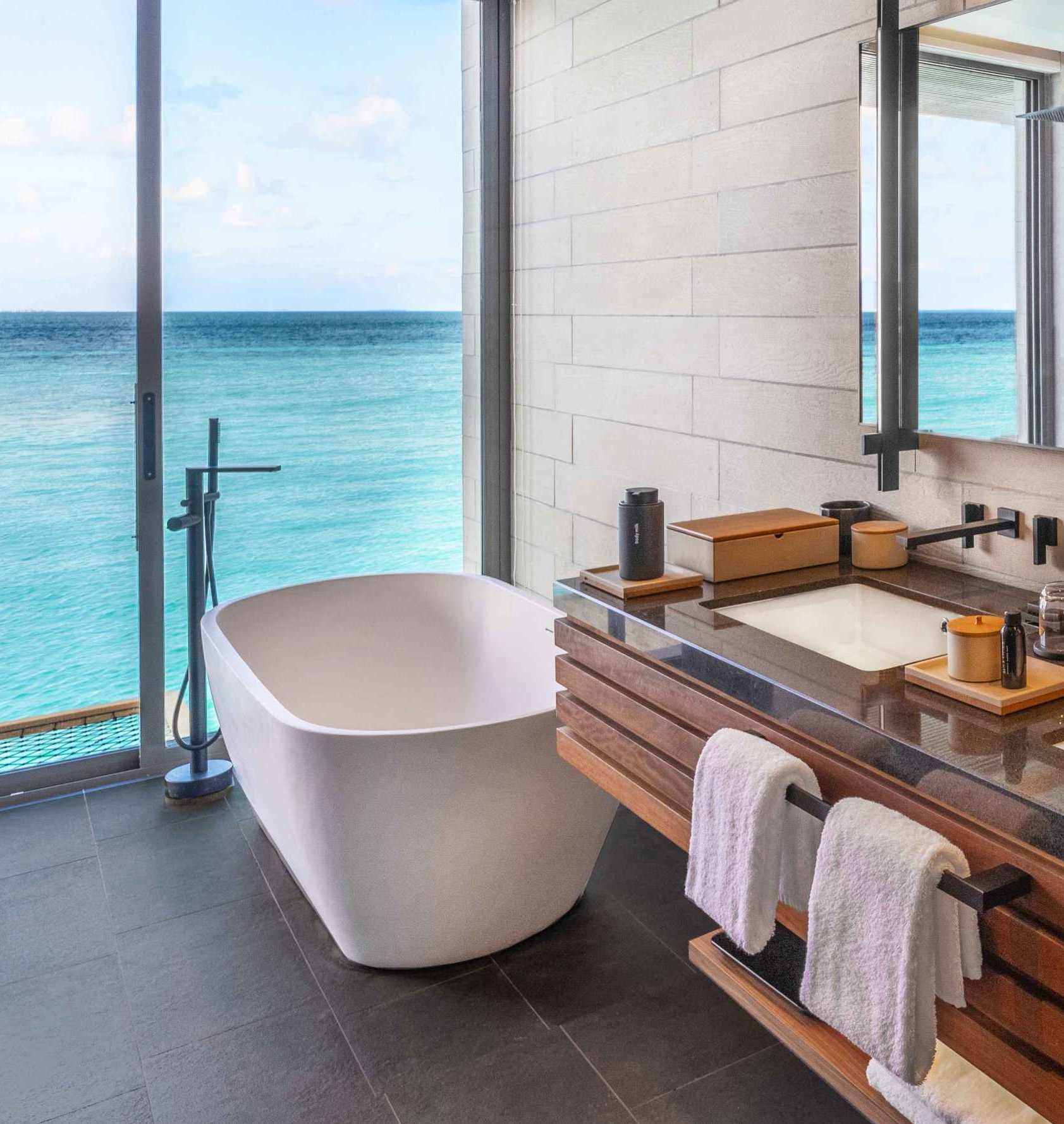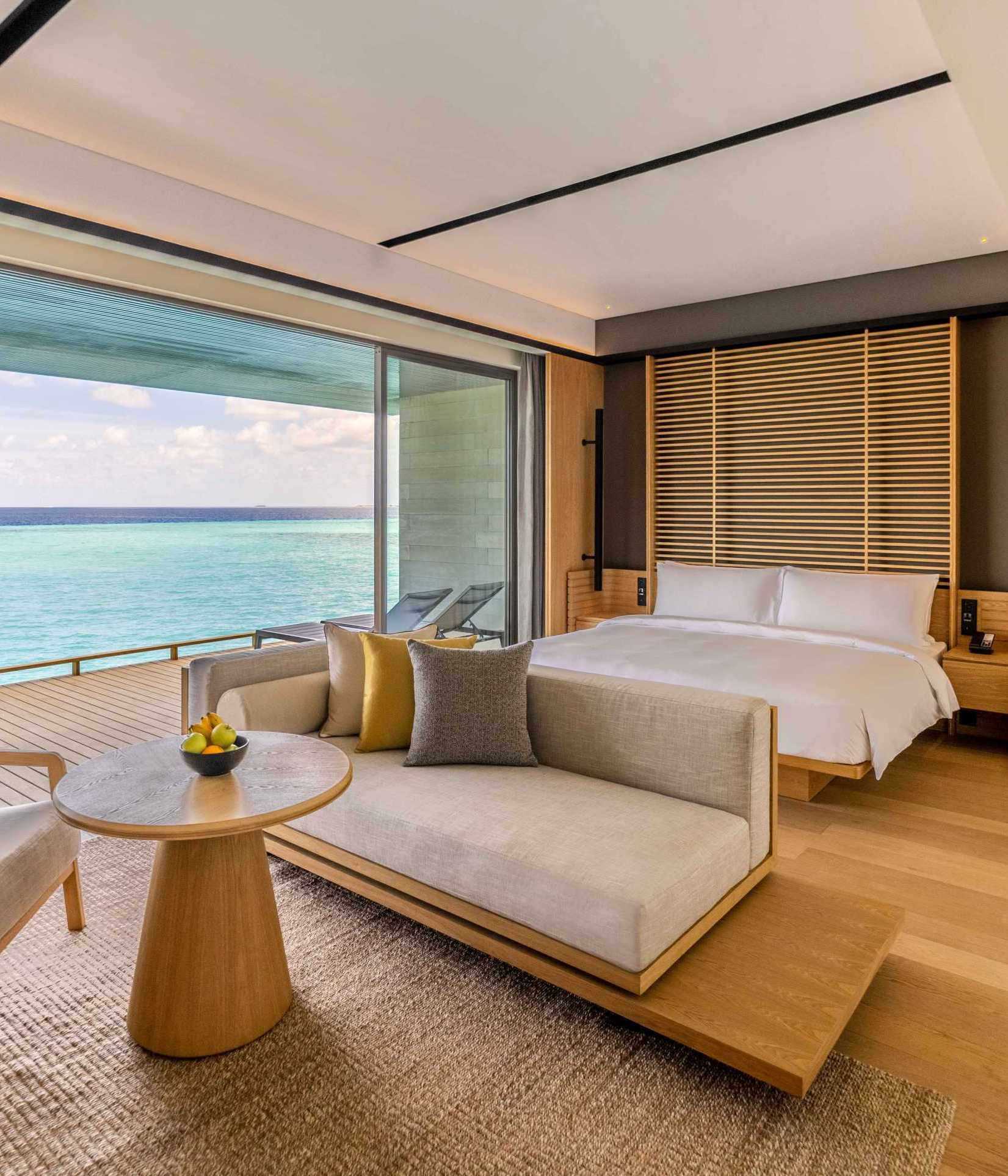 Only a 45-minute seaplane flight from Malé, Alila Kothaifaru Maldives is home to eighty villas — 44 are situated on the beach, and the other 36 are perched above the water with direct sea access. All the villas have a pool and an outside terrace — ideal for long, lazy days spent sunbathing and soaking up the sea views. The interiors also usher in a state of zen, with understated furnishings, open spaces and an ocean-inspired palette that beckon the outside in. Envisioned by Singapore-based Studiogoto, the architecture blends in with the natural landscape, so guests can feel at one with Mother Earth at every turn. The treetop spa is particularly striking, offering a cocoon of well-being nestled amidst a leafy canopy.