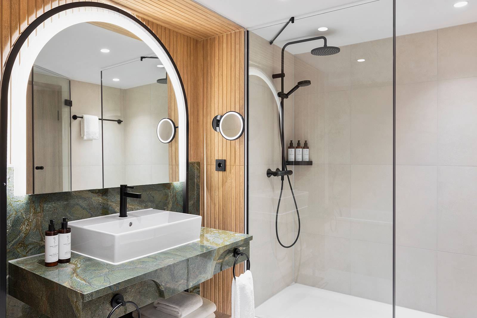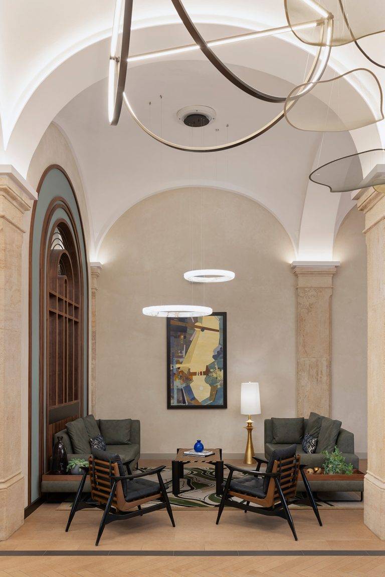 That mix of international and local design expertise is felt throughout the property. Original columns remain in the lobby; vaulted ceilings recall the former riding halls; and floors reference the timber blocks once used in the stables, while bespoke lighting and contemporary artworks gently pull the space into the present. Goddard Littlefair describe the approach simply: “Respecting the building’s illustrious past and heritage while navigating the constraints of a classical property was paramount in our approach. By carefully preserving the architectural integrity and infusing it with contemporary elements, we’ve honoured the legacy of the Imperial Riding School, ensuring its continued relevance and splendour for generations to come.”