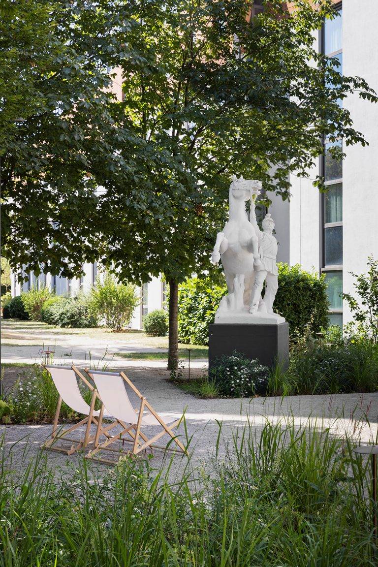 Today’s Imperial Riding School is a large operation—342 rooms and suites, a 450 m² wellness area with a gym and pool, and 13 function rooms for everything from meetings to weddings. Around €45 million was invested in the redesign, with London-based studio Goddard Littlefair responsible for the interiors, BWM Designers & Architects handling the architecture and structural planning, and Lindle+Bukor shaping the exterior landscape concept.