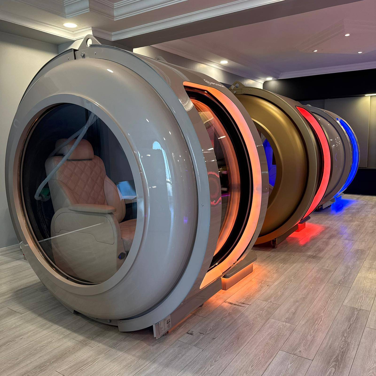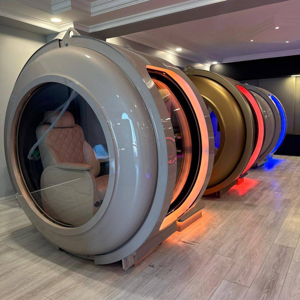 Its chambers are defined by spacious interior volumes, panoramic observation windows, ergonomic seating and reclining options, and a visual softness that is unusual in this category. Everything is designed to create a sense of openness and reassurance. The effect is less like entering a machine and more like stepping into a carefully imagined capsule for recovery.