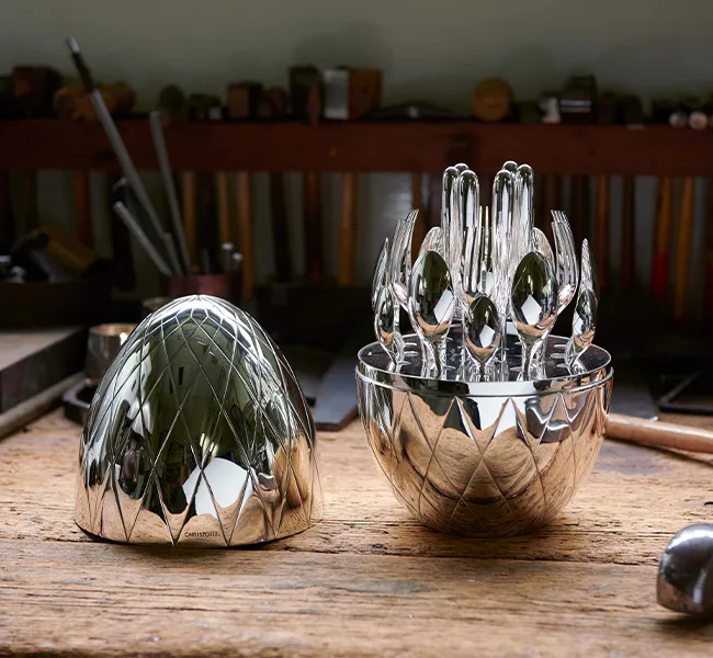 Christofle’s creativity is birthed from regular collaborations with well-respected and world-renowned artists and visionaries. Carrier Belleuse to Mucha, Gio Ponti to Ora-Ito, Andrée Putman to Marcel Wanders or Karl Lagerfeld have all contributed their talents and visions to shaping and guiding Christofle’s appreciative artistic identity and product range.