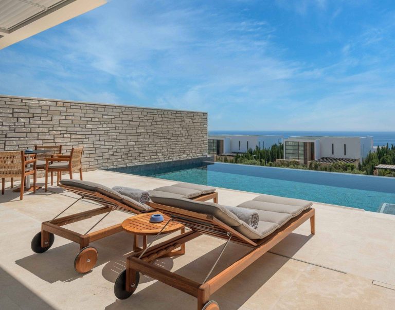 The resort has been crafted from natural Cyprus stone and designed to reflect the surrounding landscapes and embody the island’s rich culture in every line.