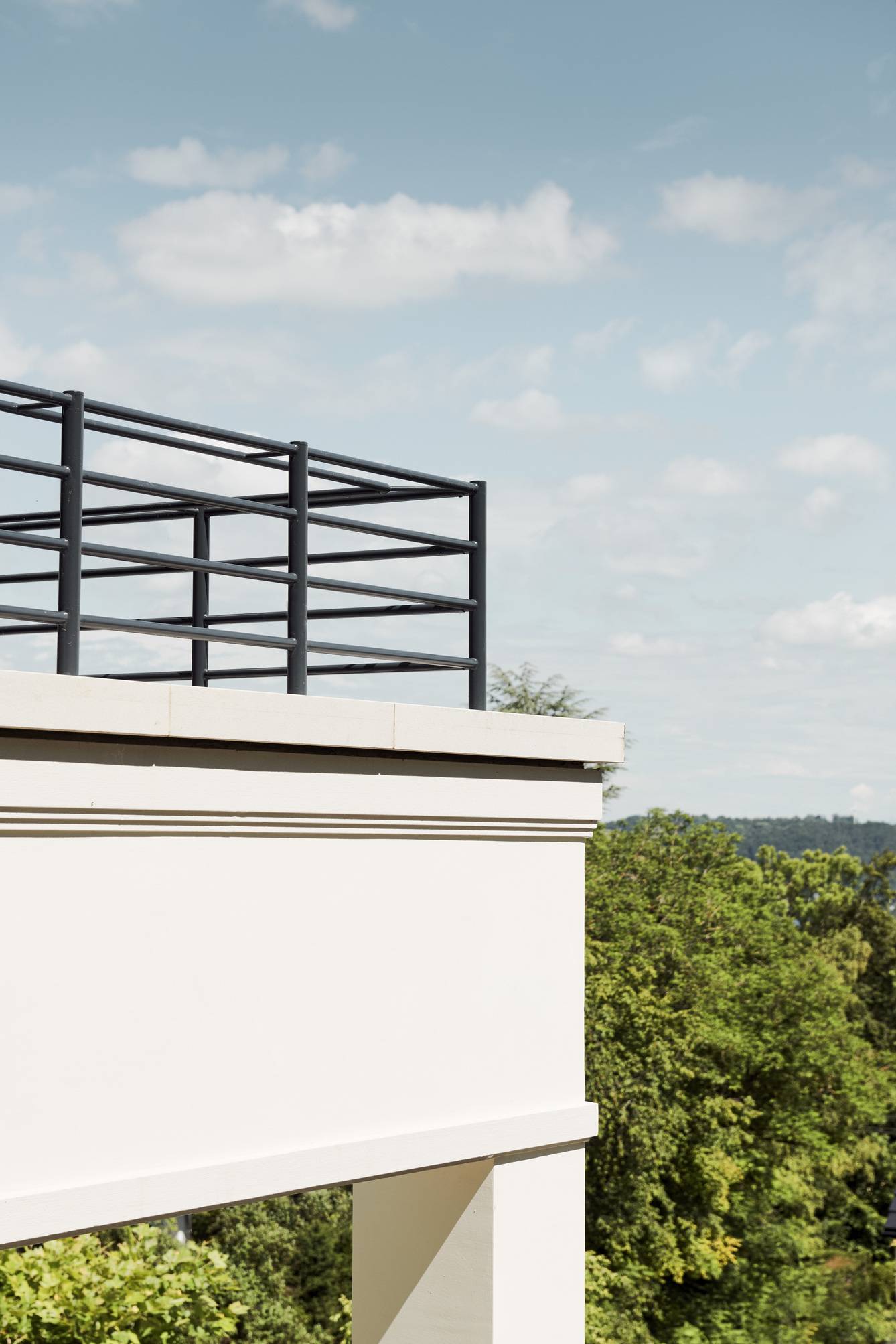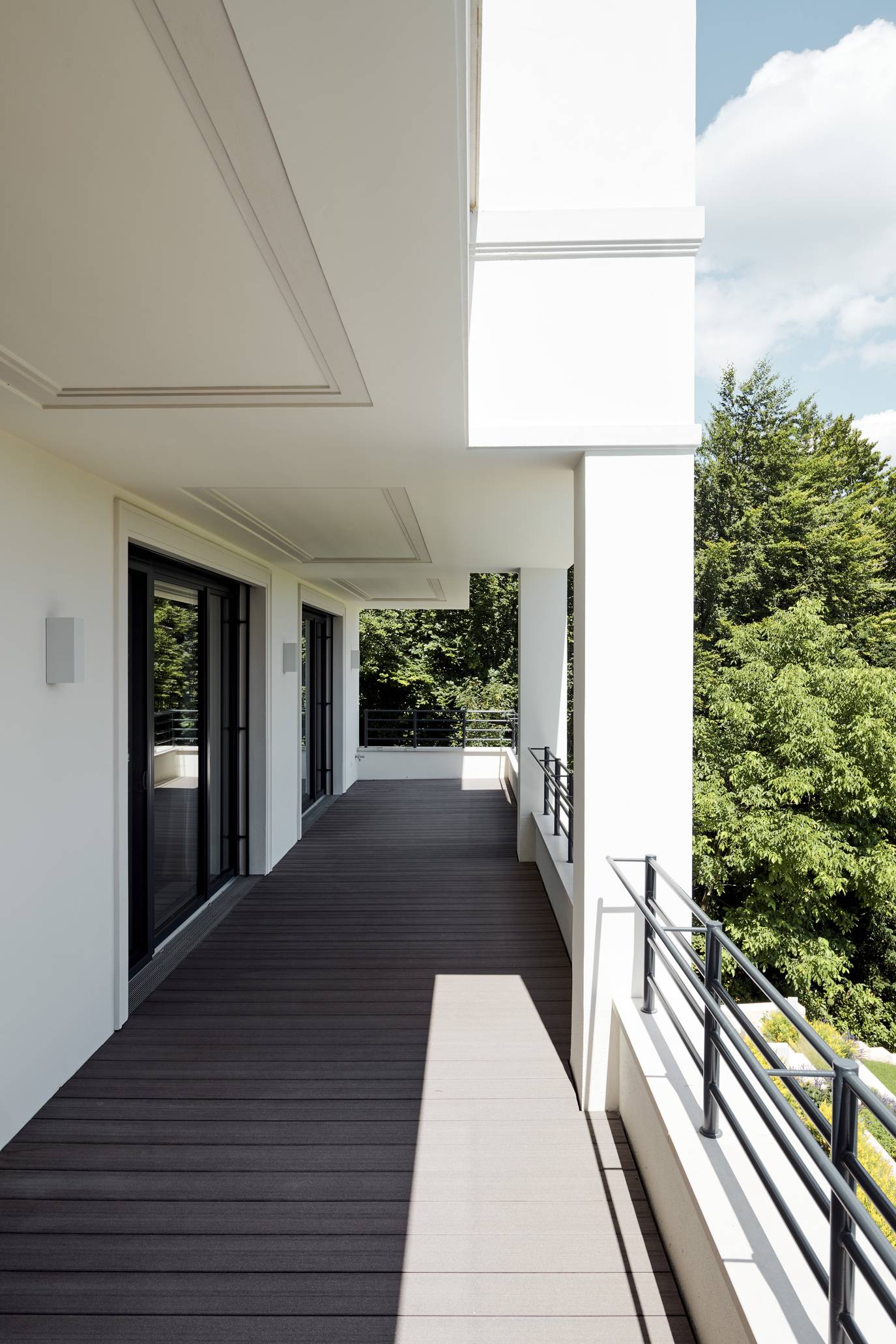 One of the hallmarks of Mauritz Design’s work is precision, and the terraced villa exemplifies this through its bespoke elements. The custom-designed railings, made from coated stainless steel bars, not only provide safety but also contribute to the overall aesthetic. Their sleek, minimalist design adds to the visual lightness, allowing them to blend effortlessly with the environment.