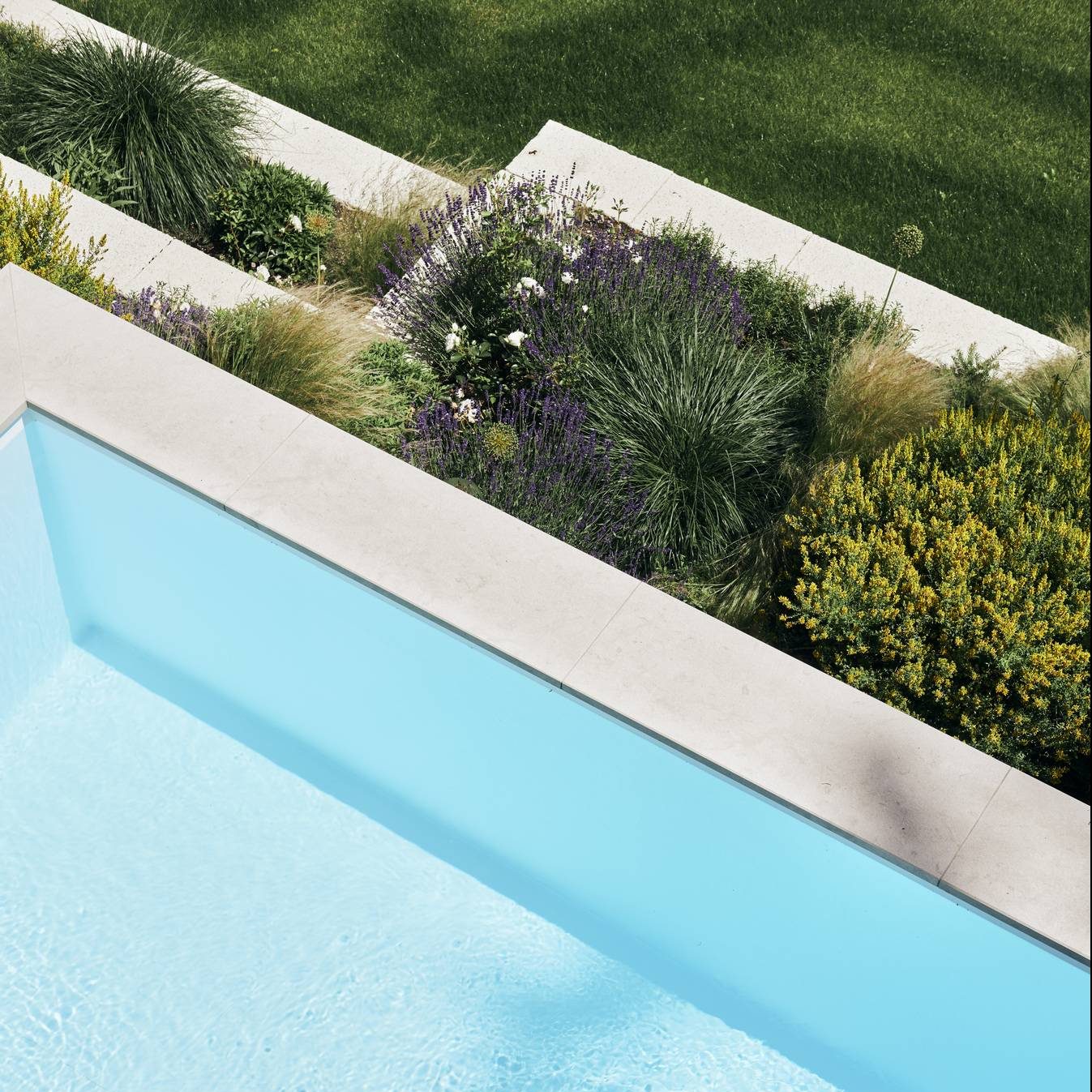 Stefan Mauritz’s architectural vision is evident in the villa’s cascading layout, which follows the land’s natural topography in clear lines, from the mountain plateau to the garden. External staircases link the various levels, creating dynamic outdoor spaces that encourage exploration and leisure. “The terraces follow the natural morphology of the terrain and bring a clear structure to the architectural concept,” says Mauritz, drawing attention to the emphasis on a smooth transition between the built environment and the surrounding landscape.