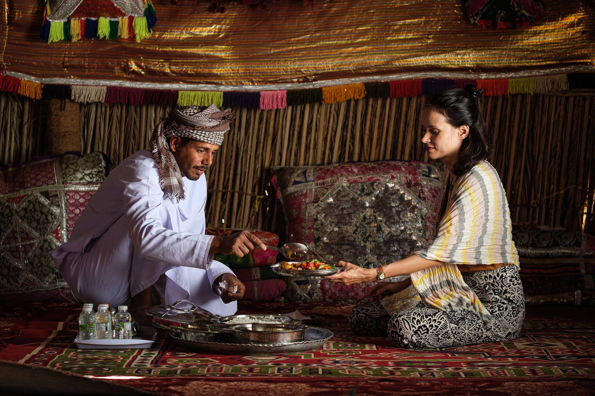 They were first set up as a fixed camp in Oman, at the heart of the gorgeous Wahiba Sands desert. We chose the Sultanate of Oman because it perfectly reflects undefinable and mysterious spirit: the country combines Arabian Peninsula authenticity, deep-rooted culture, peace and a wonderful natural environment. The natural sites are breathtaking in Oman: you will find deep-sided wadis, containing oases where you can swim in warm, emerald water pools surrounded by lush palm groves, but also deep canyons, astonishing mountain views in the Jebel Akhdar region, incredible marine fauna in Sur and the Damaniyat islands. Culture is also very rich, with old, charming Yemenite villages, forts, palaces and majestic mosques. The authenticity of the Sultanate is extraordinary – which has luckily not been a victim of mass tourism – and its high level of safety makes it currently one of the favourite destinations for all travellers.