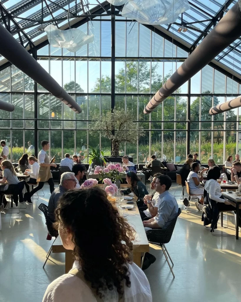 When looking for a natural-feeling outdoor restaurant in Europe, De Kas fully embraces an uncomplicated connection to our environment; a little tamed, entirely synergistic, and ultimately stunning. Featured in 2022 on Condé Nast Traveller’s prettiest outdoor restaurants in Europe list, De Kas is hosted in a series of greenhouses that date back to the 1920s. The main restaurant, a former municipal greenhouse, had been meticulously reconstructed with original elements by the former owner, Michelin-star restaurant owner and chef Gert Jan Hageman, who had actively sought sustainable solutions to the inarguably high wastage within the hospital industry.