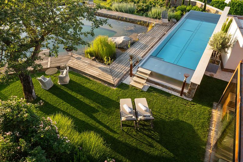 Both: The need for peace and quiet, for nature, for a retreat for the soul, for places of strength, for a place where you can do everything but can do nothing, is coming more into focus. Forest bathing, feeling energy, being pampered by the massage team in the chalet, gazing into the greenery, enjoying culinary delights at the winery or in the award-winning restaurant, having luxury in abundance and everything in one place, having the option to communicate by the swimming pond or in the champagne lounge if you so want, but still being able to enjoy your peace and quiet at any time.