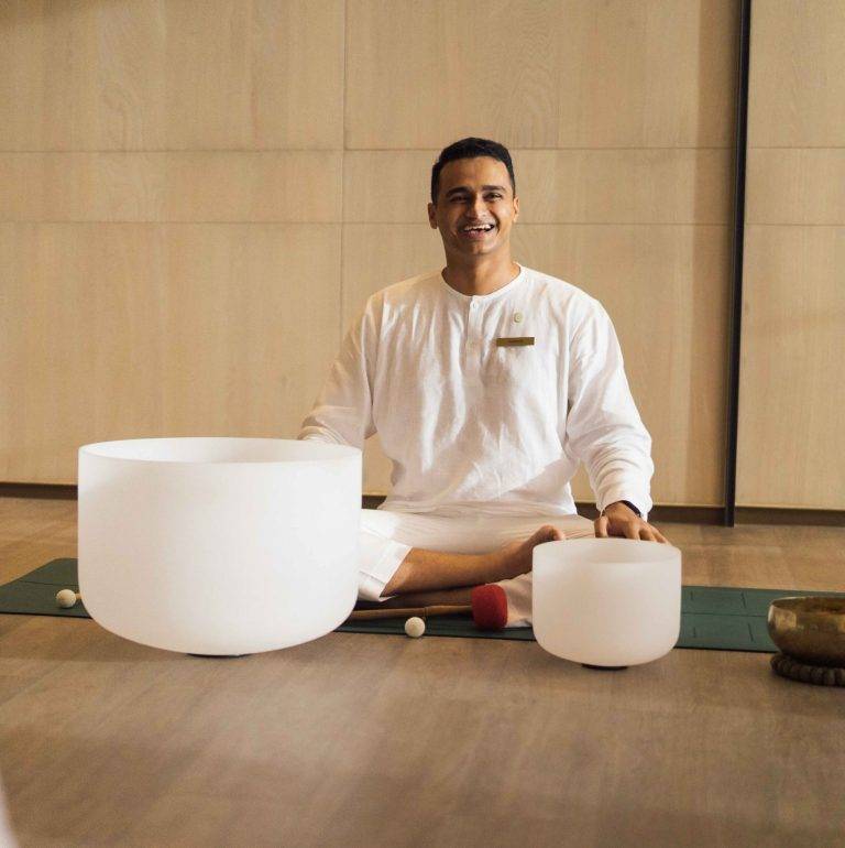 A variation on this, Quartz Immersion Therapy, focuses on rhythm and balance. The body is supported by the warm quartz sand bed, while sand poultices apply optimal pressure to targeted reflex points. A Himalayan singing bowl introduces a gentle sonic layer, helping to relax the mind while subtly awakening the senses.