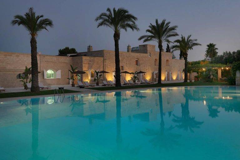 Puglia, famed for its captivating landscapes and rich culture, is home to two standout luxury retreats. The exquisite Lecce Five-Star Masseria blends Apulian tradition and modern luxury. Set within lush gardens, it features an impressive pool and impeccably styled interiors.