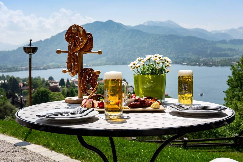 Culinary enjoyment at DAS TEGERNSEE unfolds between heaven and earth. Fine dining delights await at the Senger Restaurant, while traditional Bavarian classics can be enjoyed in the beer garden. The Castle Bar invites guests to linger over fine drinks and panoramic views. Across all venues, the cuisine strikes a harmonious balance between regional tradition and modern culinary artistry.