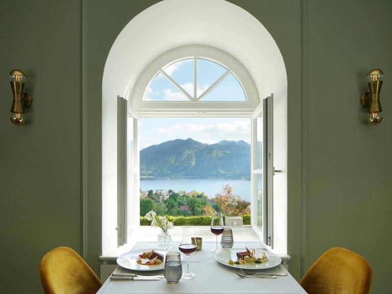 Inspired by the surrounding mountain landscape, the hotel welcomes guests with five individually designed living environments, diverse culinary experiences, THE PANORAMA SPA, and a modern event and conference centre. The architectural ensemble blends historic substance with contemporary design, reflecting Lake Tegernsee and its landscape through natural materials and regional motifs.