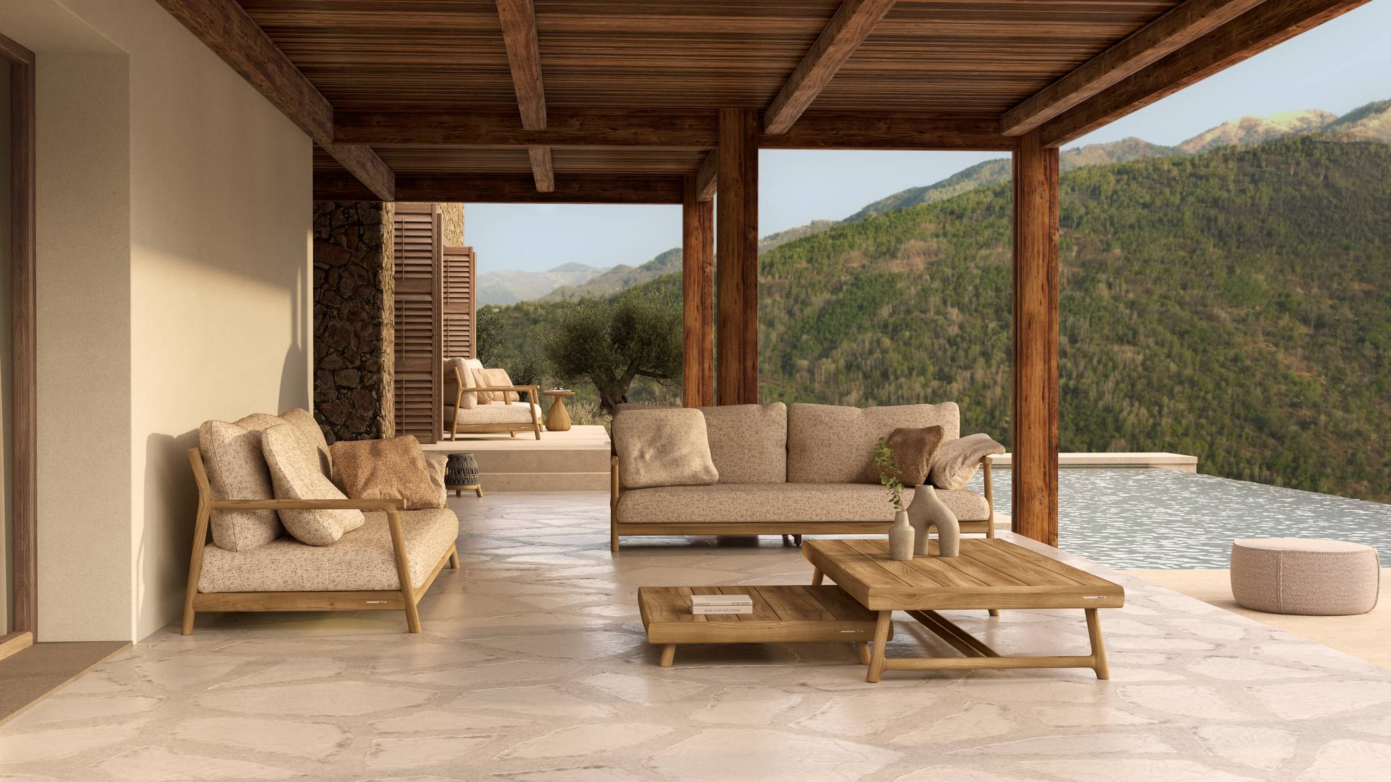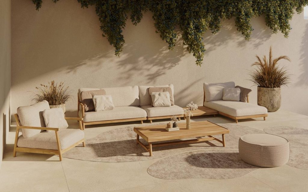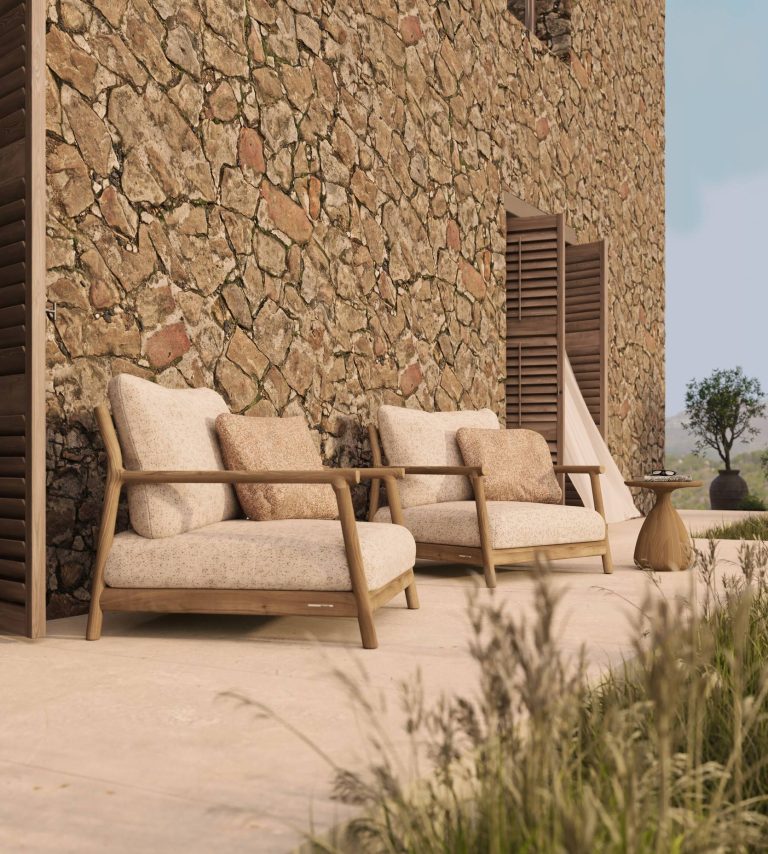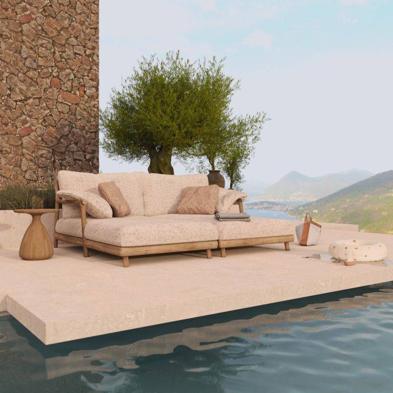 The Muyu collection exemplifies Manutti’s commitment to blending contemporary aesthetics with expert craftsmanship and superior materials to create outdoor furniture that seamlessly integrates with its surrounding environment. The collection, designed to elevate both residential and commercial spaces, features twelve pieces, including modular lounge sets, sleek dining chairs, a spacious daybed and a chic coffee table, all crafted in neutral palettes with graceful teak silhouettes. These pieces are characterised by smooth curves, flowing lines and soft, rounded joints that create flawless organic structures, offering visual and tactile appeal.