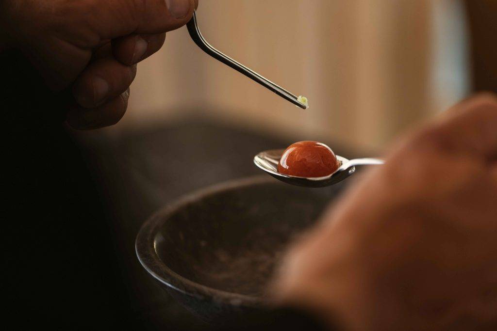 This year, I am particularly fond of the first course in our tasting menu. The appetizers we serve on the high table are truly exquisite, specifically designed to awaken the taste buds and generate a sense of surprise and excitement in our guests — something we had never achieved so profoundly in the initial course of the menu.