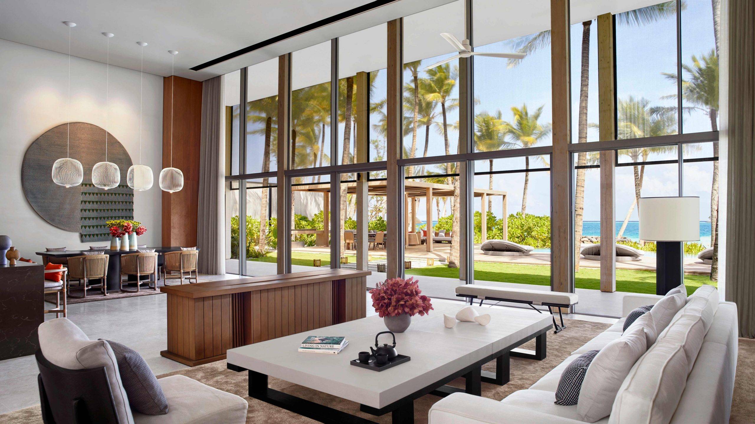 The open-plan living area is dotted with curated artwork, elegant furniture, and a dining table that seats eight. Outdoors, a 19-metre infinity pool stretches towards the horizon, flanked by a sunken fire pit and a dining pavilion perfect for entertaining beneath the sun or stars. There’s even a dedicated entrance for security or a private nanny — a thoughtful feature for high-profile guests. Whether you’re hosting a celebration or simply savouring solitude, The Ritz-Carlton Estate is a world within a world. A dedicated buggy ensures seamless movement around the island, though you may never wish to leave.