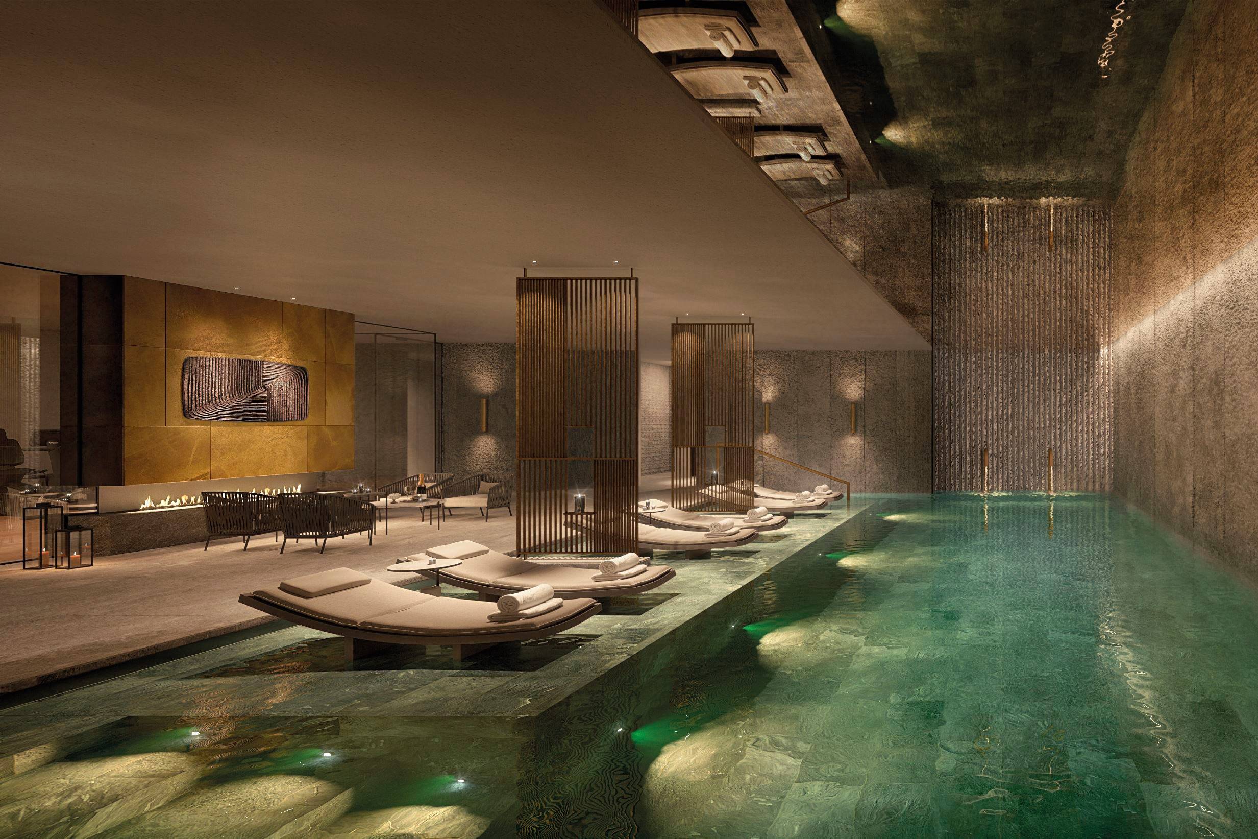 Above: Arctic One offers an expansive spa and wellness area complete with an indoor pool, massage area, Turkish bath, sauna and relaxation lounge