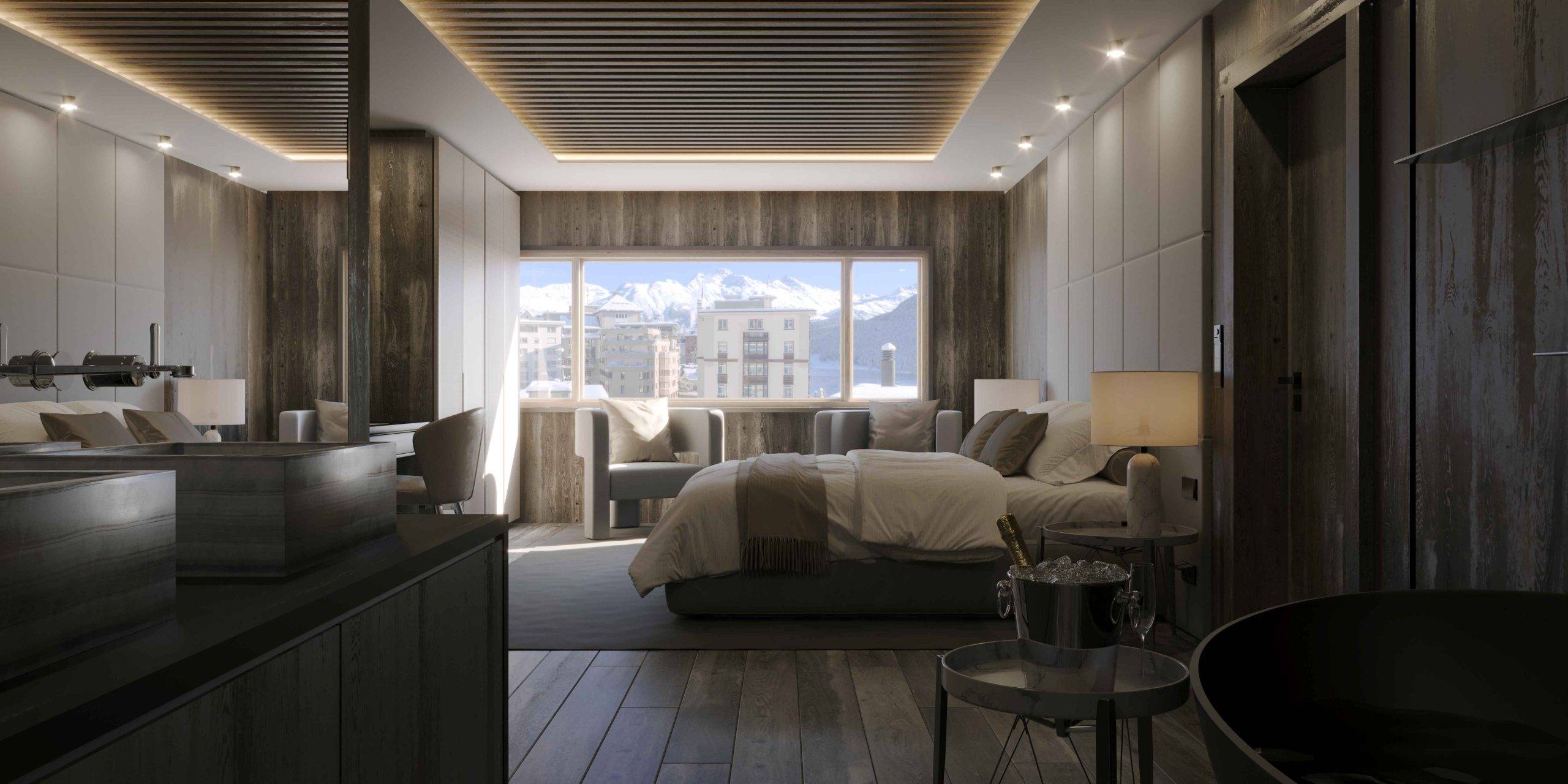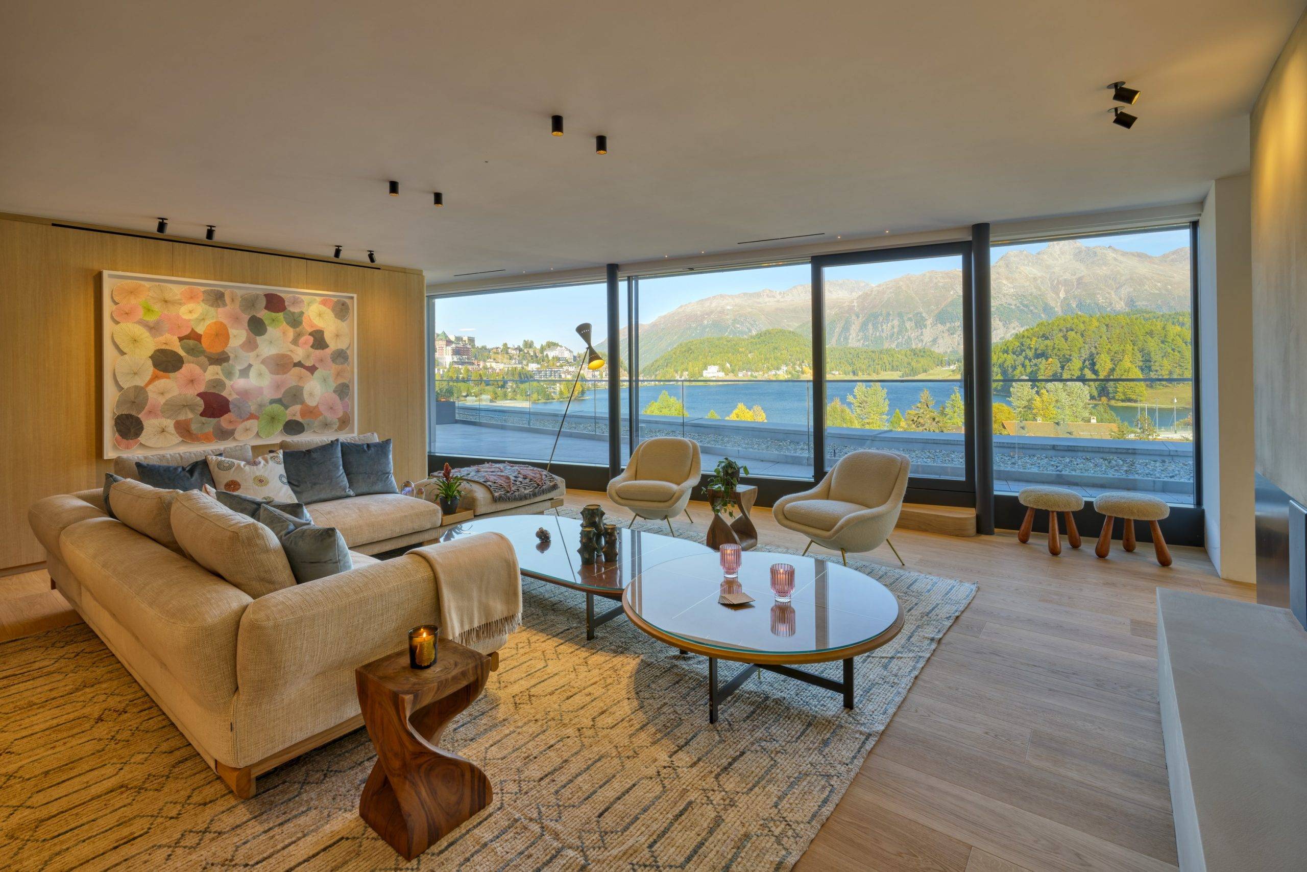 Above: Skyway, a renovation project of a three-bedroom, three bathroom residence overlooking St. Moritz and the lake