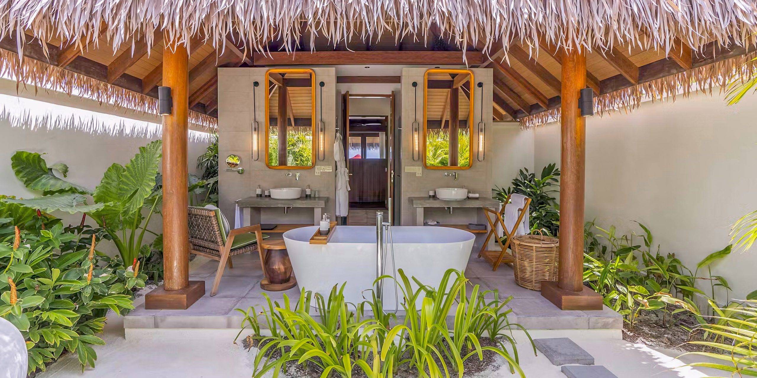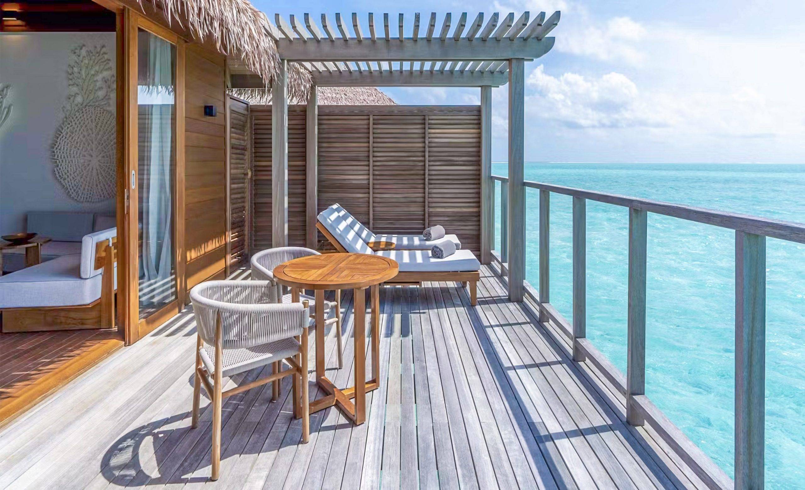 The resort comprises 100 private villas, each positioned to maximise privacy and uninterrupted ocean views. Overwater villas hover above the lagoon, their terraces opening directly onto the sea. Sunset Suite Villas add private pools and generous living space, designed for couples seeking seclusion. For those drawn to the tactile pleasures of island life, Beach Villas place white sand quite literally at the doorstep.
