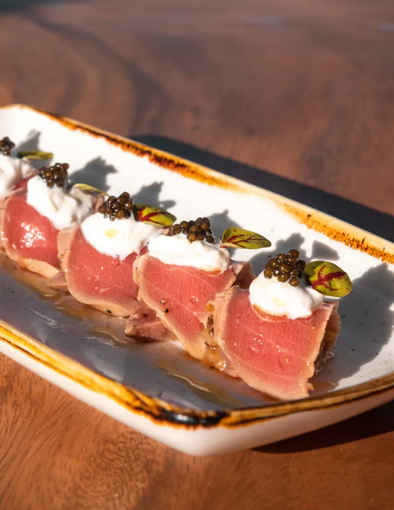 With a showcase of local produce and seasonal catches, the Club strives to create a fresh and novel take on island-style cuisine. Few dishes represent this as much as freshly caught wahoo carpaccio seasoned with citrus and fennel or the superb yuzukosho lobster sauce vierge. With a keen eye on responsibly sourced products, Nao Beach integrates international produce with the local, such as with the delectable Golden Imperial Caviar found in the Toro tataki smoked aubergine and stracciatella.