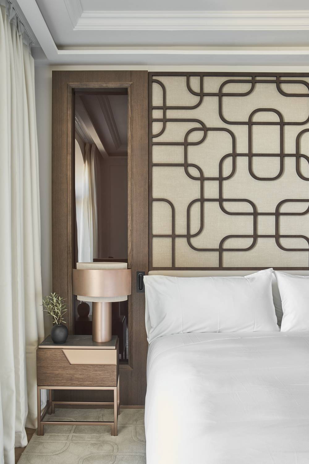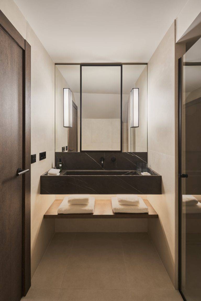The interiors, envisioned by Tomas Alía from Studio Caramba, seamlessly blend the Franco-Basque Belle Époque architectural style of the building with Nobu’s characteristic Japanese minimalism. Employing natural materials and traditional craftsmanship, Alía establishes an atmosphere of serenity and sophistication from the instant visitors arrive. The entrance and lobby area draw inspiration from Torii gates, characterized by clean, unadorned lines. A remarkable sculptural central staircase connects to guest accommodations, where neutral hues juxtapose with striking floor-to-ceiling headboards. Nobu Terrace creates a harmonious connection between indoor and outdoor spaces, engaging in a dialogue with the sea and the shoreline. Meanwhile, in the Nobu restaurant, the quintessential streamlined Nobu aesthetic highlights the culinary creations as the centerpiece.
