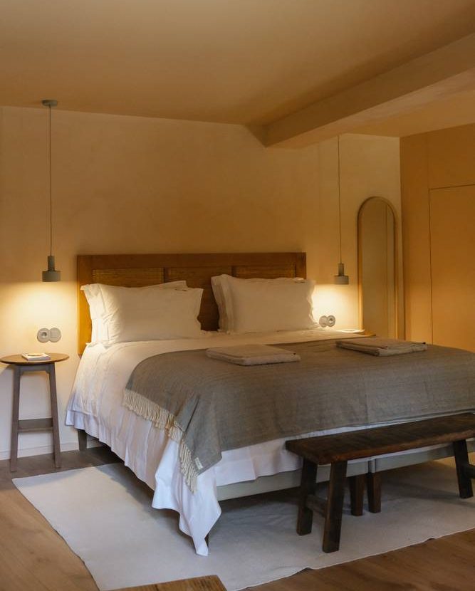 The renovation of Paço da Glória has preserved the gothic heritage of the buildings’ exteriors, while internally, Rebecca has introduced a chic and refreshed aesthetic. Using materials like parador and microcement, guests can now enjoy Paço da Glória year-round. Meia Lua, a building within the estate, has been transformed into two studio apartments and a house with seven suites connected to a three-level tower featuring a living room, dining room, and kitchen – perfect for bigger groups of friends and family.