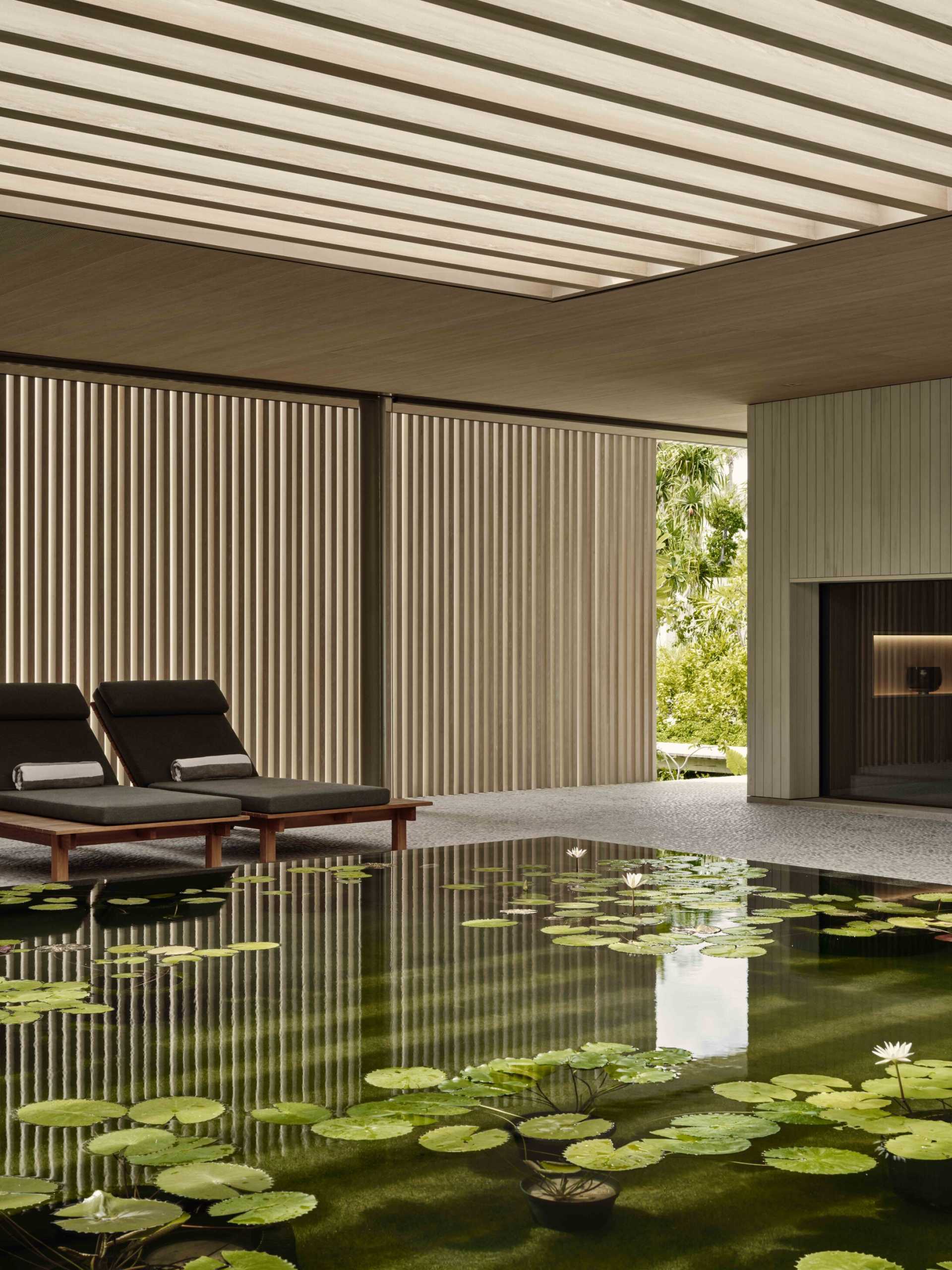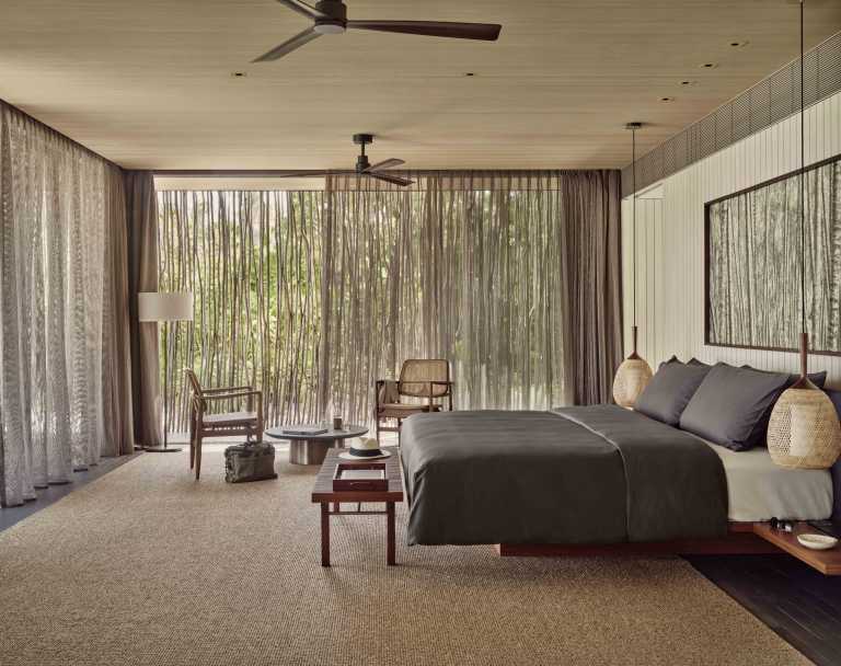 A perfect example of biophilic construction, renowned Brazilian architect Marcio Kogan has skillfully incorporated natural lighting, ventilation, and the surrounding landscape into the resort’s spaces in a deliberate attempt to better the health and well-being of guests. All villas have been purposefully placed to stay below the horizon line ensuring uninterrupted views of the sea. In contrast, the garden villas have been cleverly spaced and shielded by lush vegetation in order to hide them in plain sight. With a seamless blending of inside and outside spaces, Kogan has preserved the natural ebb and flow of the island’s elements, allowing for an improved and more sustainable built environment.