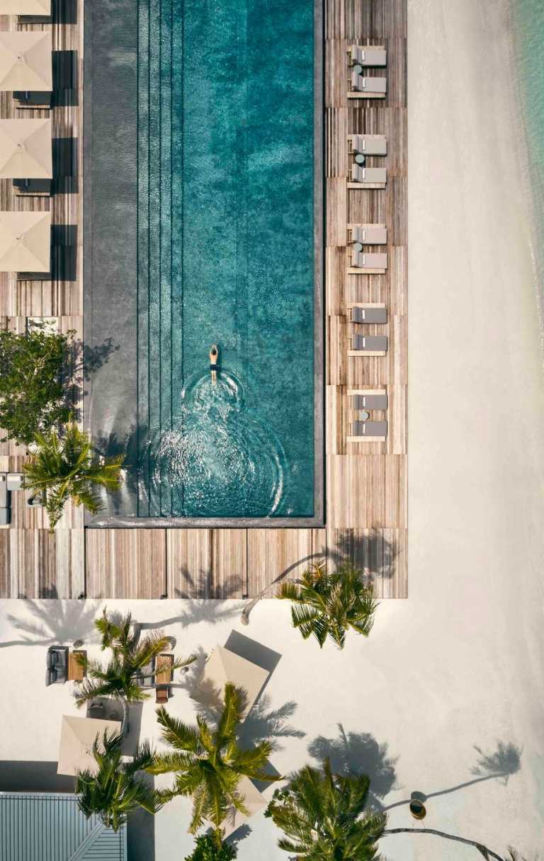 FOUR first caught wind of the opening of Patina Hotels and Resorts’ flagship venue back in 2020, when the news of an icon-in-the-making was announced for the Maldives. Aiming to be a radical example of a contemporary island villa stay, Patina Maldives’ ninety exquisite beach and water pool villas — ranging from one to three bedrooms — offer guests rustic Maldivian simplicity housed within a sophisticated structure that pays homage to nature and the elements.