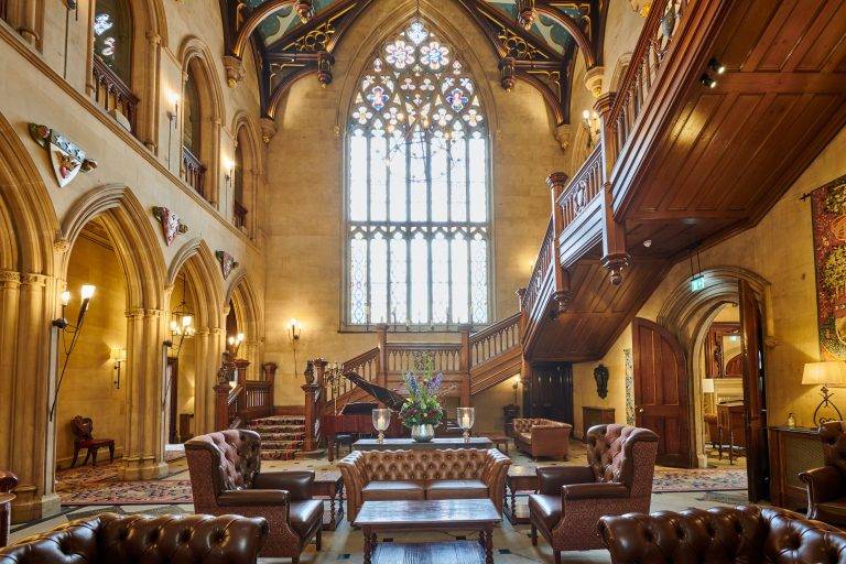 As I arrive at Matfen Hall, a mixture of sun and clouds accentuate the grandeur of its Jacobean-style architecture spanning three storeys. Inside the Great Hall, Gothic features evoke passion and drama, an uncanny cross between a cathedral and a Hammer film set. The vaulted ceiling’s ornamental patterns and wooden buttresses compete for attention against an imposing wooden staircase leading to a galleried hallway.