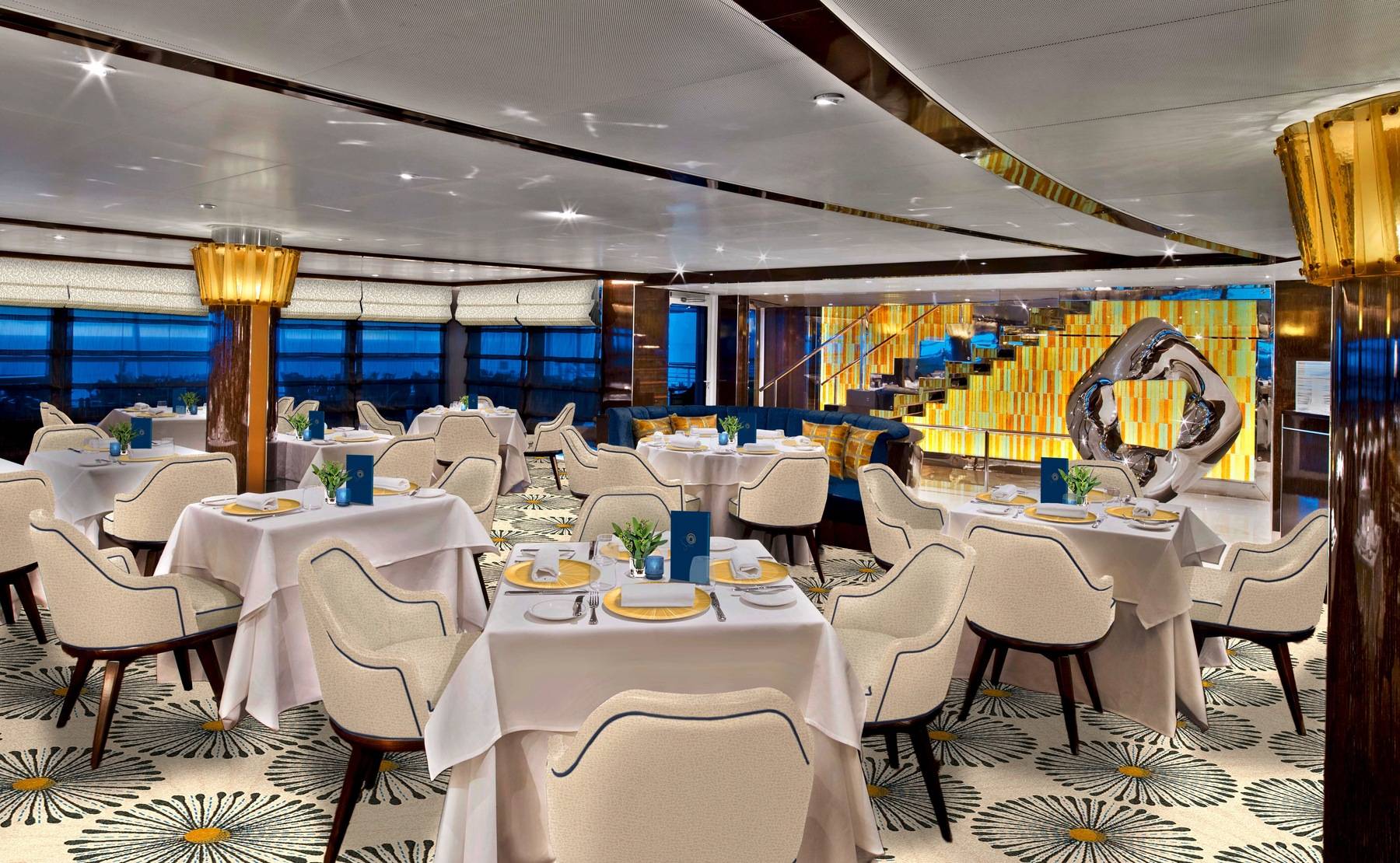Quickly, habits start to form as life at sea unfolds at its own, unrushed pace. Mornings might begin on a plump armchair at The Square with a crispy, sweet macaroon and handcrafted cappuccino — the barista already remembers how you like it — made with beans freshly roasted in-house a few hours earlier. Breakfast, with all the trimmings, could be a white-glove affair delivered in your suite or a leisurely spread at The Colonnade, where fresh-sliced fruit, eggs made to order and still-warm pastries fuel you for the day. By night, that same space transforms like a chameleon, serving themed menus spanning Italian favourites to French classics and Asian fusion. For something more elegant, head to The Restaurant, where the ship’s talented culinary team whips up an ever-changing selection of delicious internationally inspired dishes.