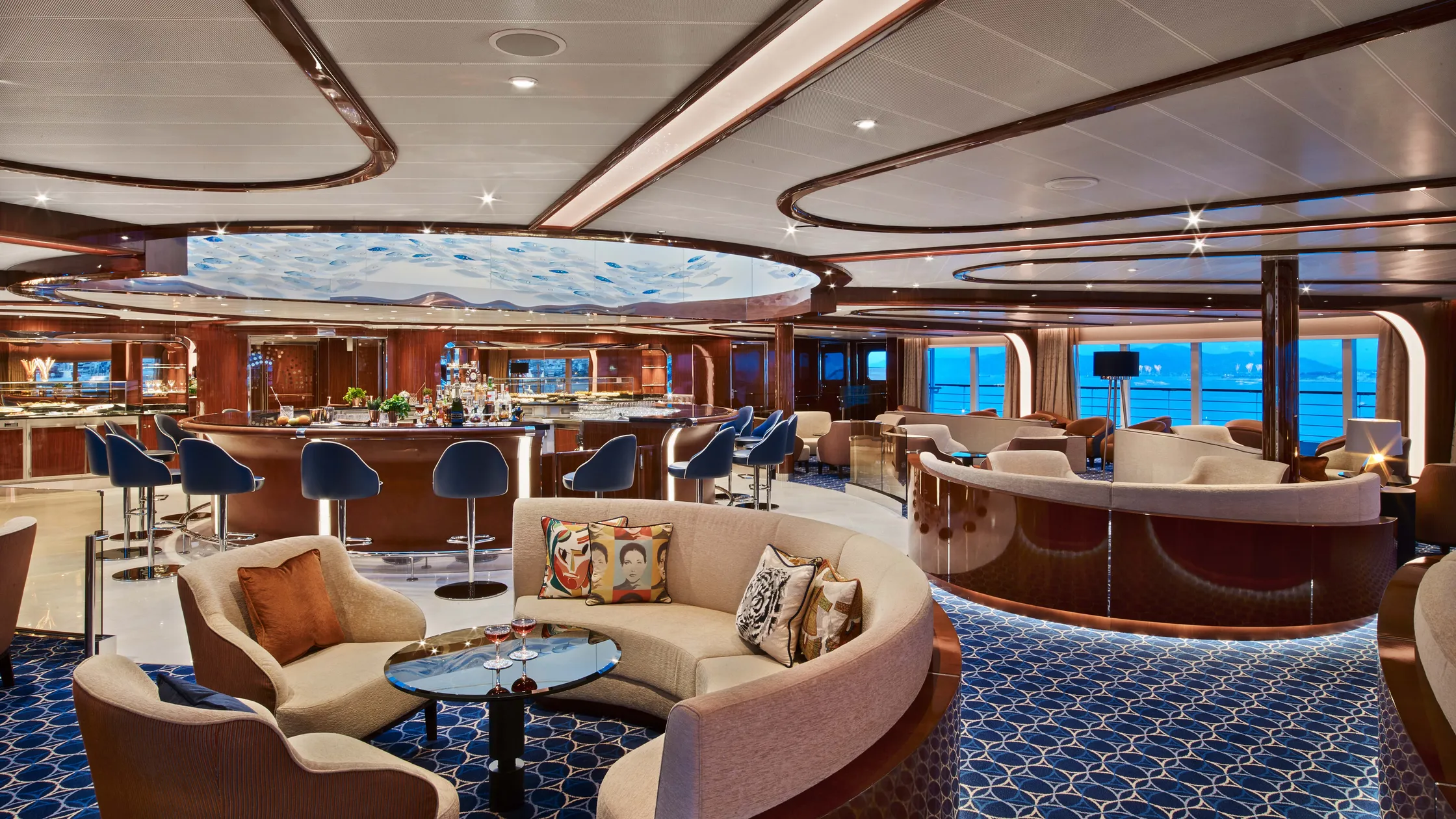 Seafood shines throughout the menu, most notably in the salt-baked Branzino, carved in front of you as you gaze in awe, and a bouillabaisse royale that honours the waters the ship sails through. For those craving something from the land, Senior Corporate Chef Franck Salein pays homage to his grandmother’s cocotte-baked chicken, scented with tarragon, while a Tuscan-style Snake River Farms Porterhouse proves a popular choice. The confit of lamb, served with boquerones and a bright green herb coulis, finds its perfect match in a bold red, expertly chosen by the ship’s discerning sommelier. For a sweet finale, there’s a tiramisu — assembled with flair at the table — or a speciality affogato named after the iconic women who defined Hollywood’s Golden Age. And to linger a little longer, a nightcap at the Solis Bar is a must, where the mood is elevated by a gifted pianist, Deborah Dyer, playing softly into the night.