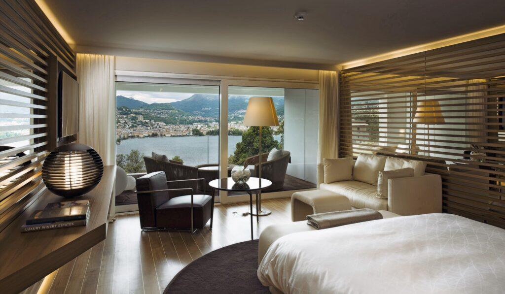 The View Lugano is precisely as its name suggests: a stunning design-led hotel with superb views across Lake Lugano. A boutique hotel with only eighteen luxurious suites, each of which comes with a private furnished terrace, every facet is designed to soak up the beauty of its surroundings. Taking cues from a luxury yacht, the interior features teak flooring, leather furnishings and chrome-steel accents. Large glass windows, expansive open spaces and perfectly manicured gardens further characterise the hotel, which is only a five-minute walk from the town centre.