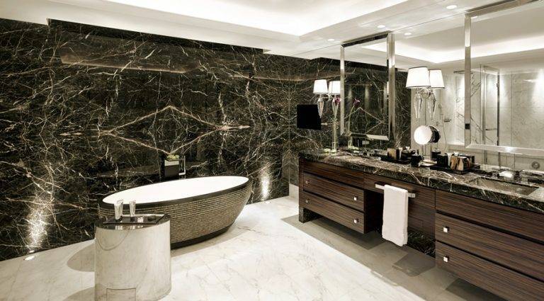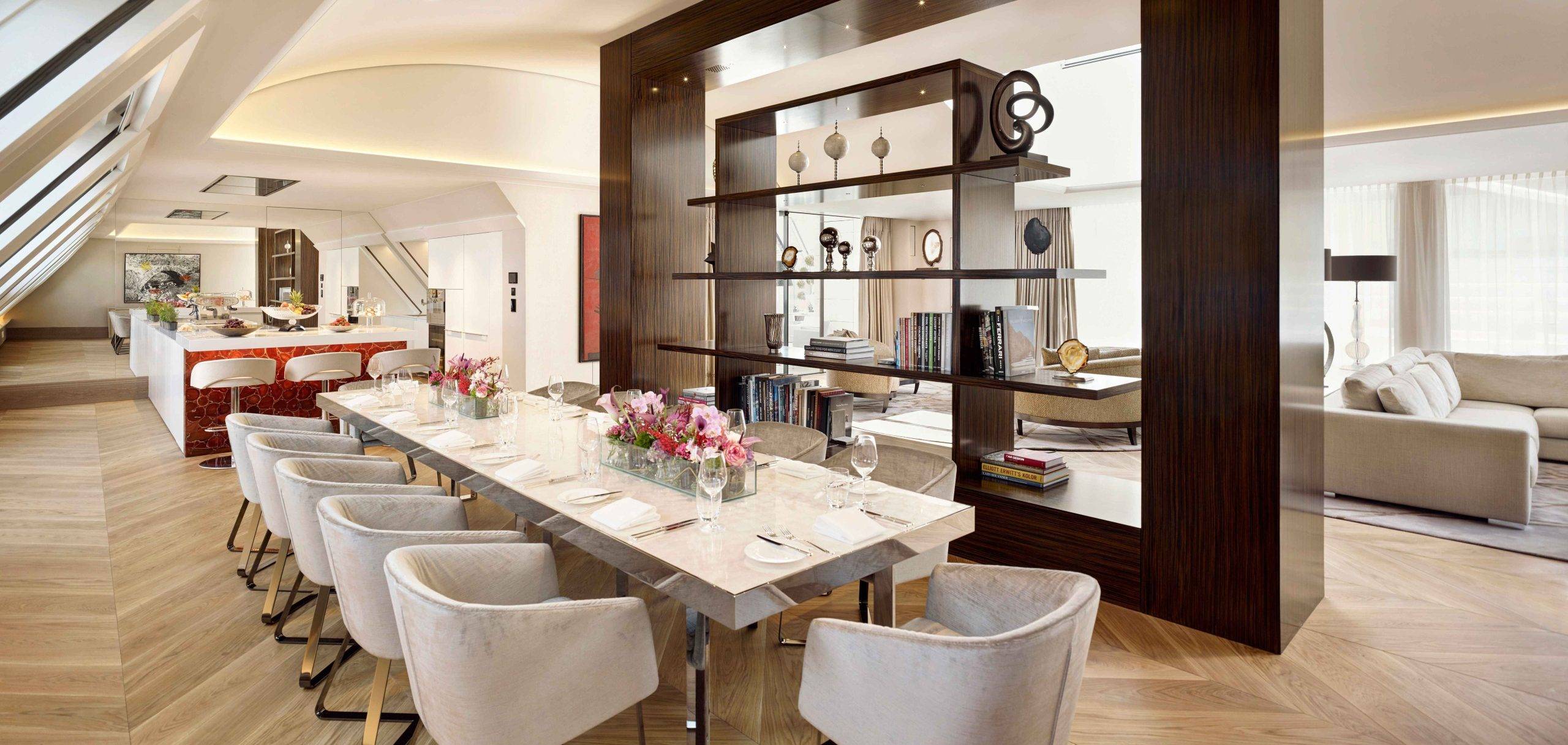Located on the fifth and sixth floors of the esteemed five-star hotel and connected by a magnificent onyx stairway, the Royal Penthouse Suite is graced with a truly lavish layout. From a spacious living and dining area to three well-appointed kitchens, four sumptuous bathrooms, a private gym, a walk-in closet, a family room and an office, no detail is spared in ensuring that guests experience the epitome of luxury.