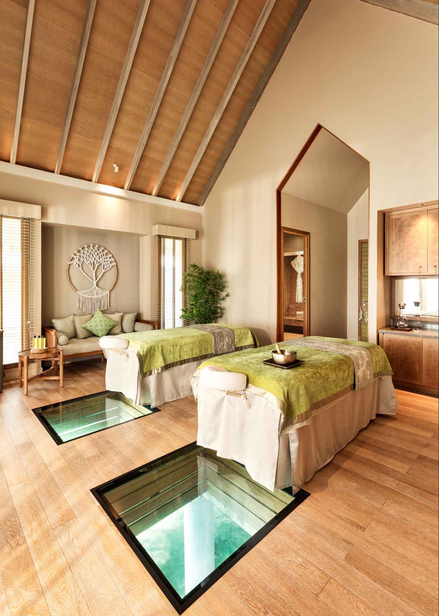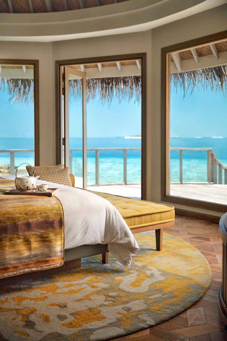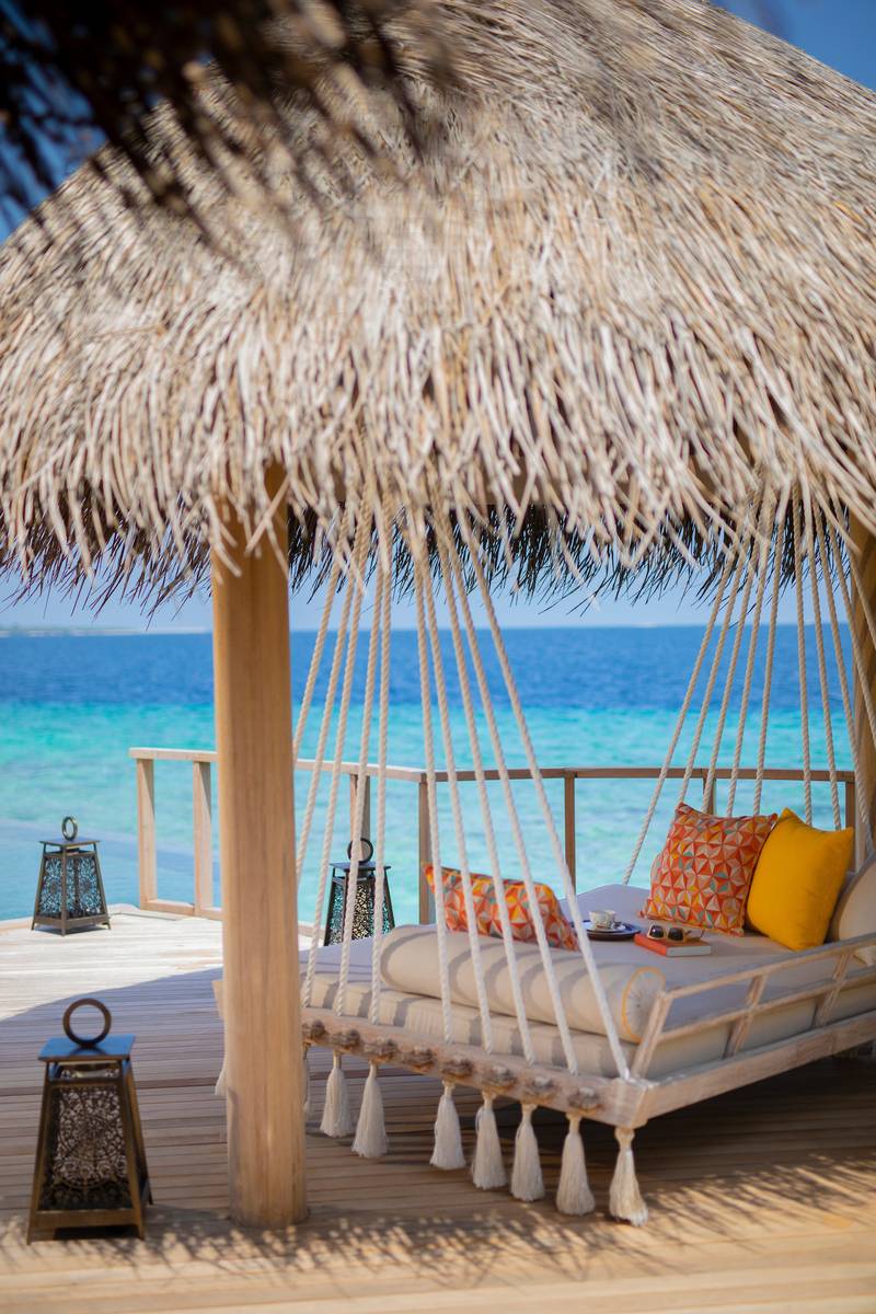 Echoing the majesty of the milieu, the accommodations’ interior design is a masterclass in understated elegance. Organic lines, natural materials and a neutral colour palette usher in a sense of calm while harmonising with the natural environment, giving it the space to shine. At the same time, bespoke furnishings and hand-picked bohemian décor add a touch of effortless chic, showcasing a perfect balance of modern comfort and Maldivian aesthetics.