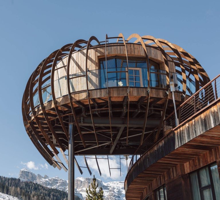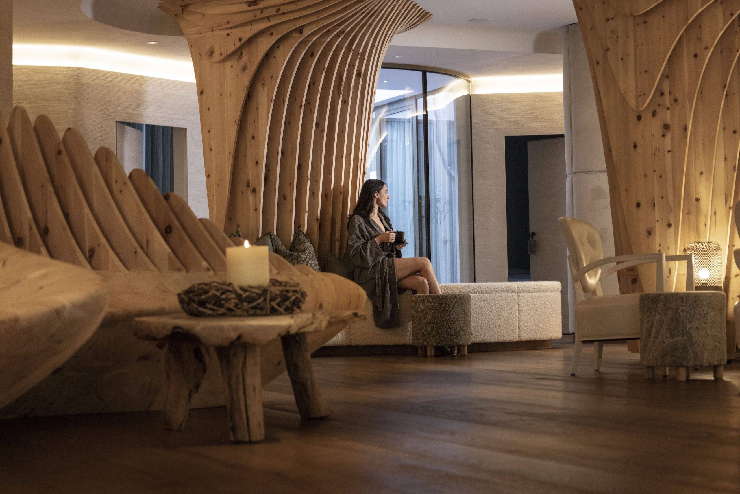 Guests enjoy full access to the hotel’s expansive 5,000-square-metre wellness area, a true sanctuary dedicated to relaxation, featuring a variety of saunas, a Turkish bath and heated pools. The adults-only panoramic Sky Pool, a 25-metre infinity pool, offers uninterrupted views over the Dolomites, while the iconic Elements Sauna, suspended nine metres above the ground, slowly rotates to reveal a breathtaking 360-degree panorama of the surrounding peaks.