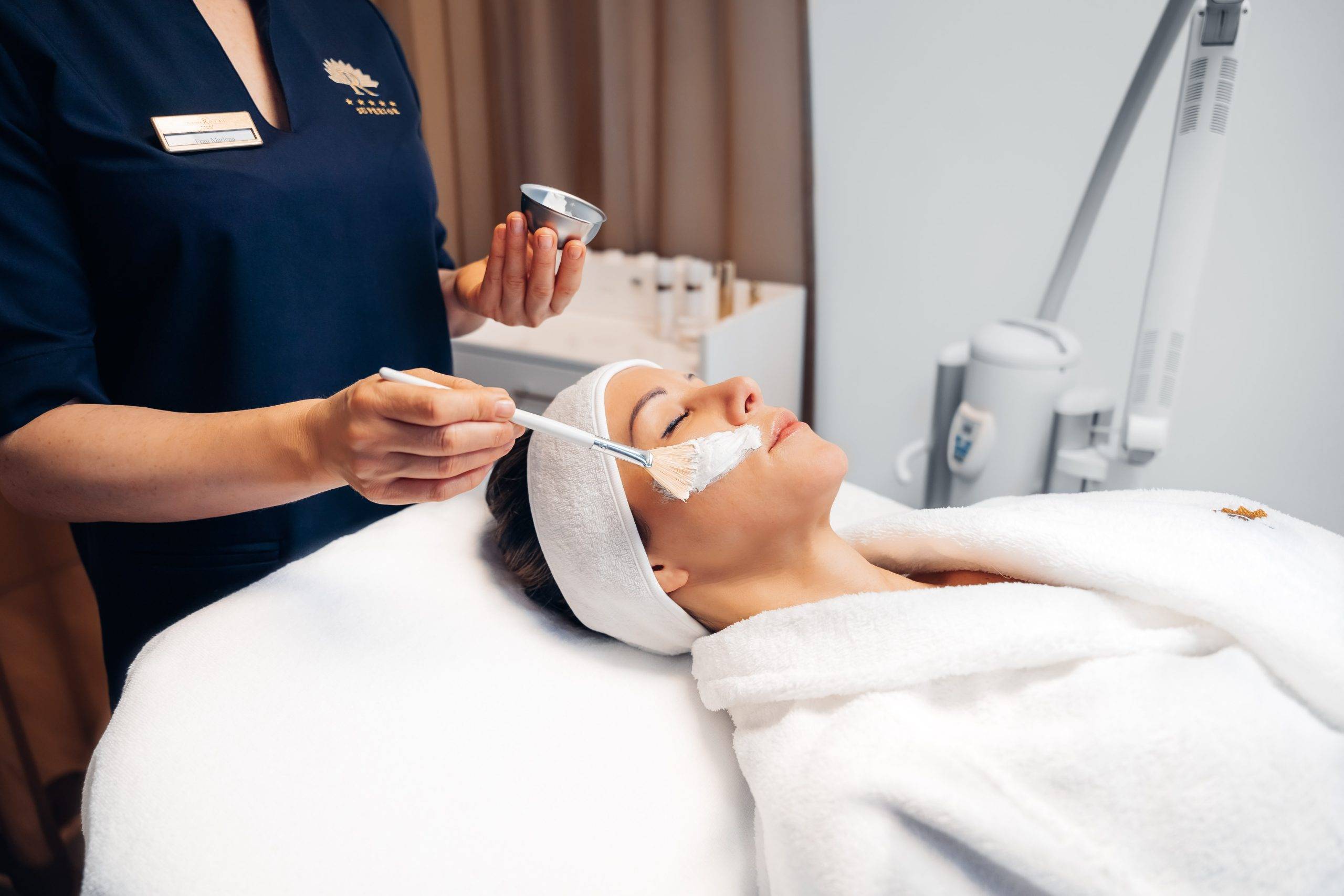 Clockwise from top left: Royal Spa Relaxation Area; Facial at the Royal Spa; Sauna at the Royal Spa; Hamam at the Royal Spa.