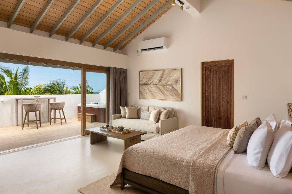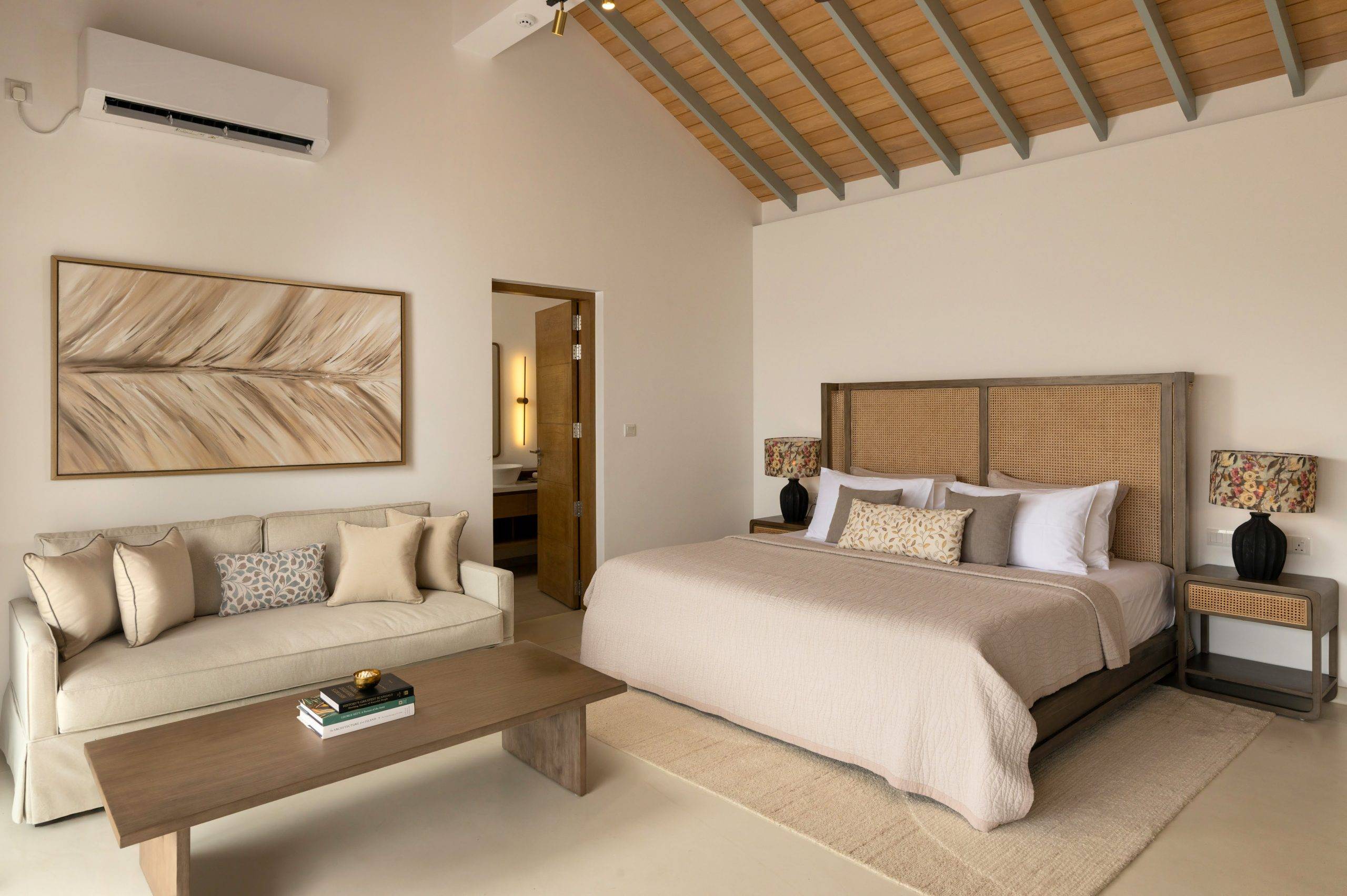 With 7 suites overlooking the Indian Ocean, Uga Prāva captures the elegance of the nearby coral reefs through a modern, minimalist aesthetic. Interiors feature clean lines, neutral tones, and natural textures — think soft linens, woven rattan, and pale stone inspired by coral. Each suite opens onto a balcony or terrace designed for unhurried mornings or candlelit dinners, complete with super king beds, sumptuous linens, and spa-like bathrooms with walk-in showers and jacuzzis in select categories.