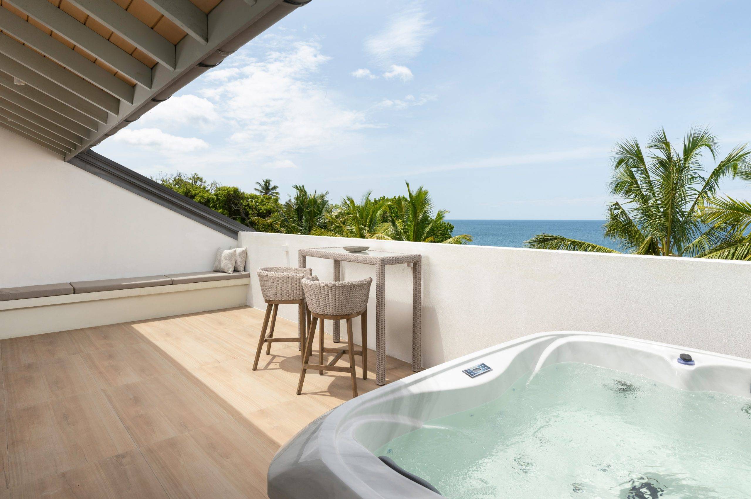 - Hermit Suites (823–9716 sq ft) — Inspired by local hermit crabs, these two suites offer total privacy, panoramic ocean views, and a private balcony with a jacuzzi.