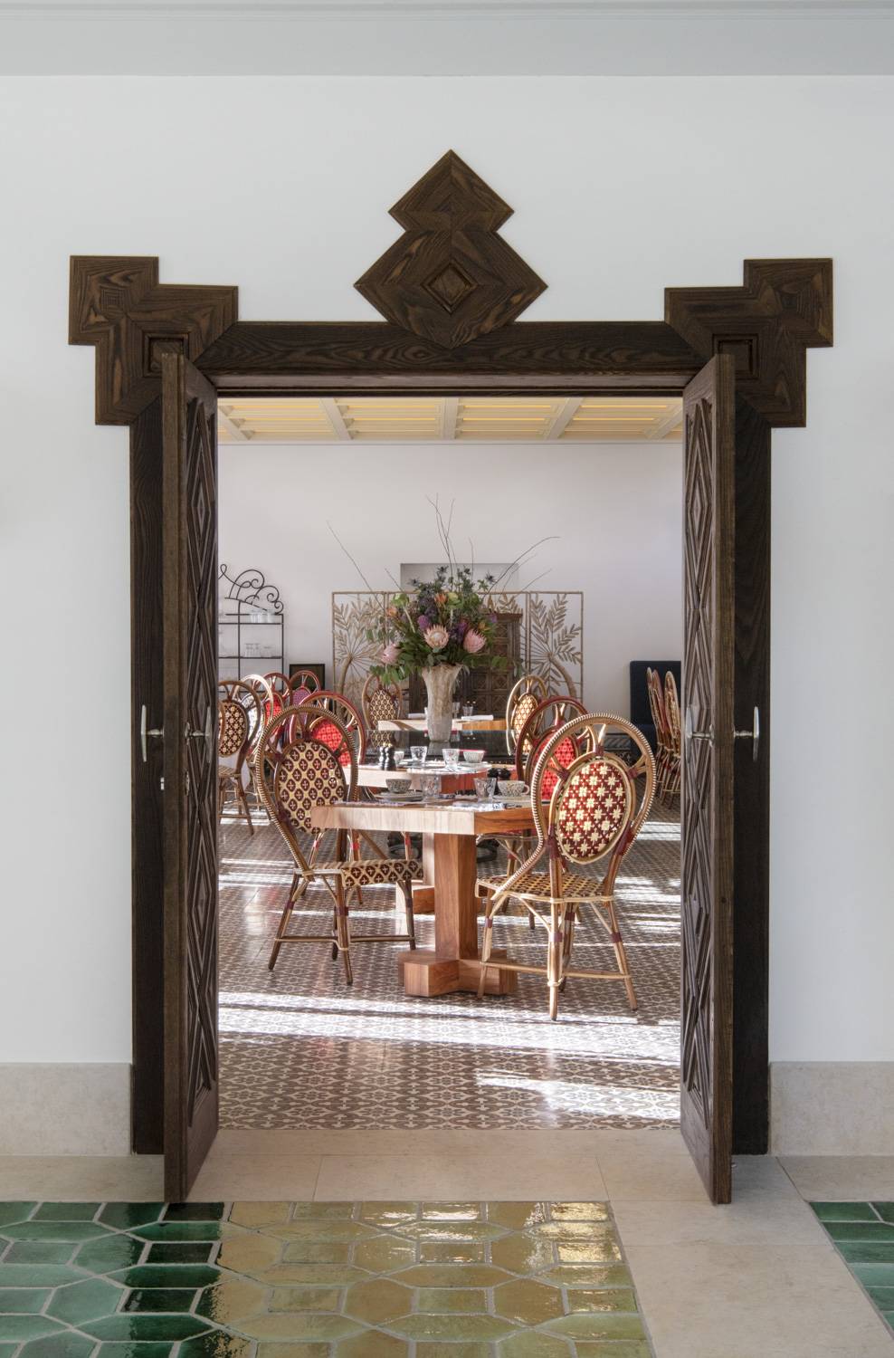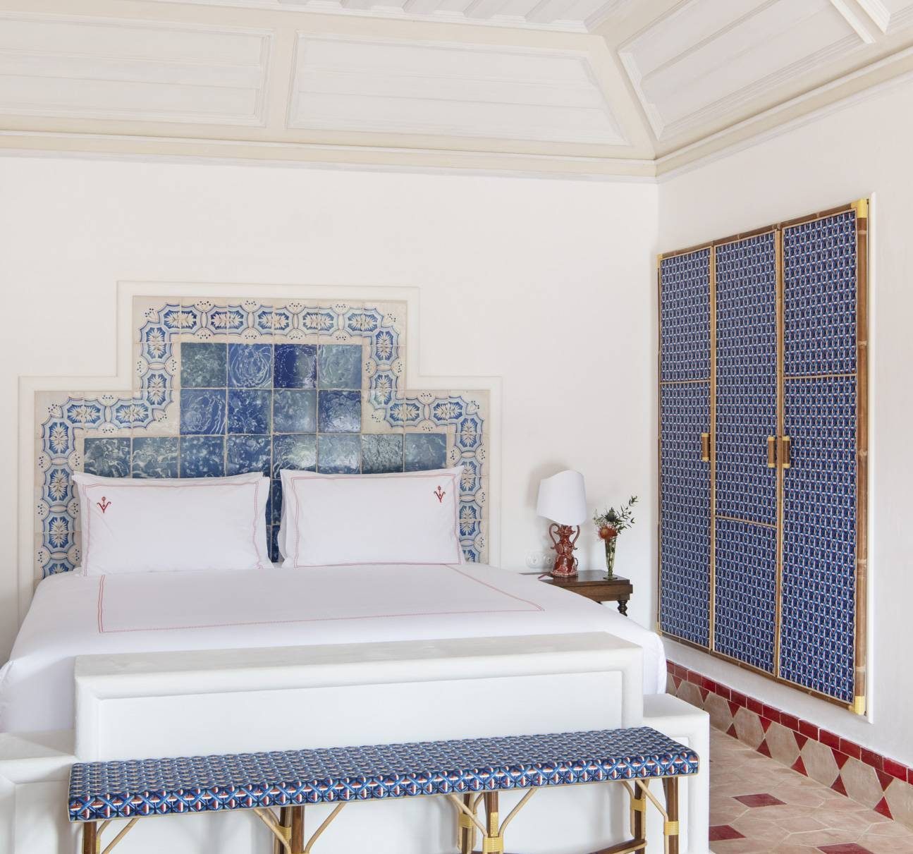 To bring Vermelho to life, Louboutin called upon a team of exceptional talents. Collaborating once again with Lusitanian architect Madalena Caiado, with whom he had previously worked on his Lisbon residence, the hotel’s design seamlessly captures his vision. Long-time friend Carolina Irving has provided valuable guidance on textile creations and overall decoration. Patricia Medina, a friend from Sevilla, has bridged the gap between Iberian artisans’ unique and timeless craftsmanship and contemporary architectural visionaries. Furthermore, renowned French landscape architect Louis Benech, celebrated for his remarkable portfolio of public and private commissions across the globe, has designed the hotel’s gardens to harmoniously blend with the surrounding landscape, showcasing its vibrant yet understated natural beauty.