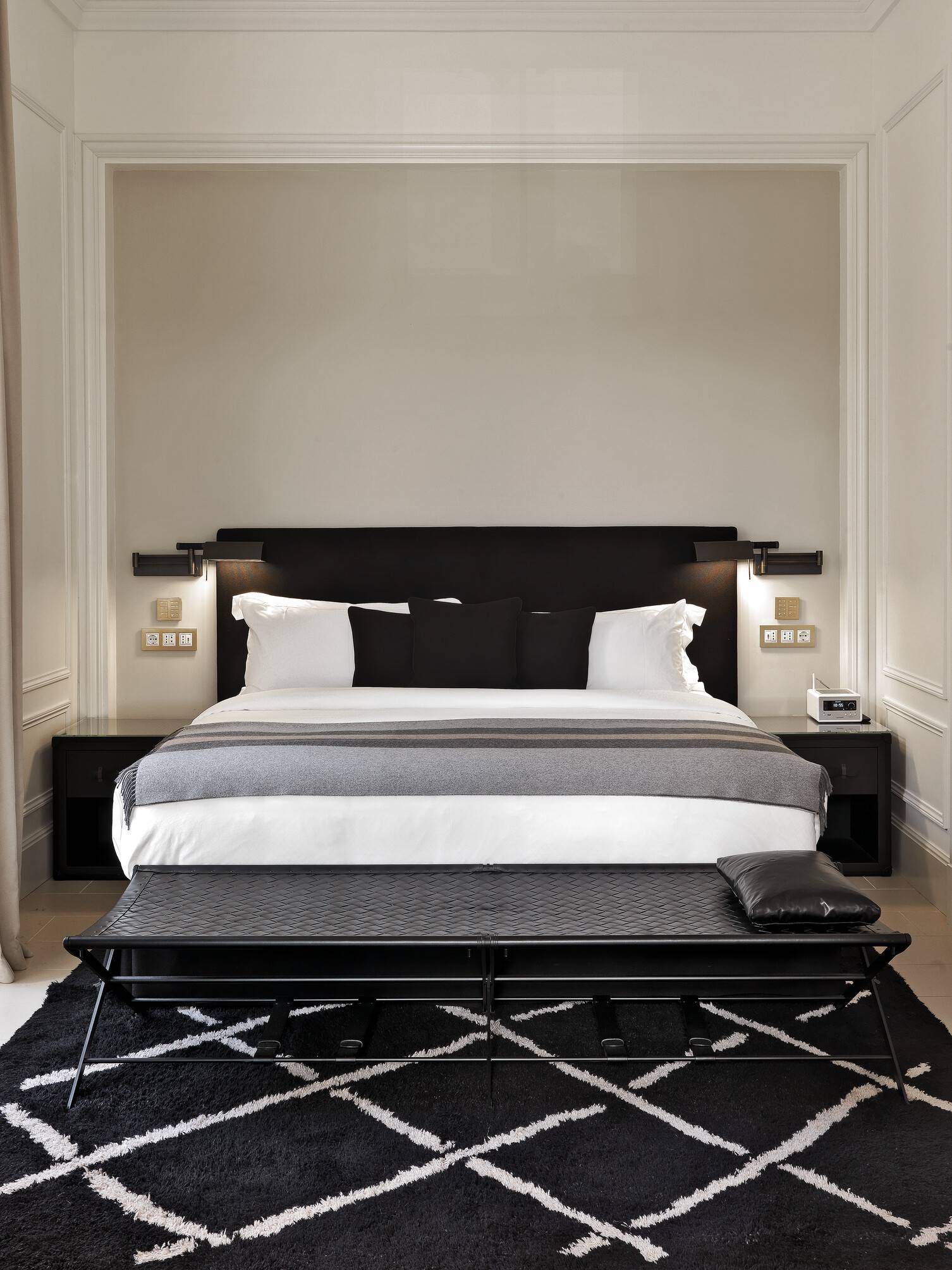 Elsewhere, the Bottega Veneta Suite offers a more discreet take on luxury, channelling the illustrious fashion house’s signature texture-rich aesthetic through a mosaic of espresso leather, wool rugs and dark oak furnishings. The Presidential Suite, one of the larger suites in the property, evokes the layout of a private apartment, its curved glass desk and vaulted neoclassical ceilings giving a nod to the building’s noble past while offering a setting fit for modern diplomacy. An homage to a visionary and aficionado of all things fine and beautiful, the Astor Suite pays tribute to its namesake with golden light, expansive living areas and a subtle layering of classical and contemporary detail. Meanwhile, the Metropolitan Suite leans into clean architectural lines and a softer, more pared-back aesthetic—ideal for those who appreciate soothing design and ample space in equal measure. Together, the suites form a constellation of distinct identities, each with its own tone and tempo.
