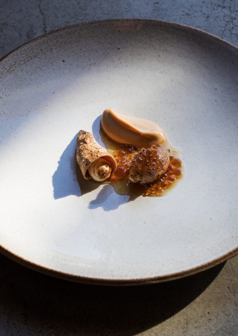 A luscious dish featuring the humble Jerusalem artichoke paired with the robust flavor of coffee by Mikael Svensson of Kontrast in Norway.